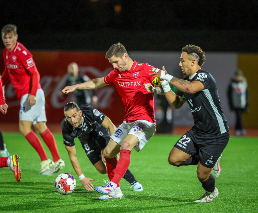 Darraðadans í teig Valsmanna sem koma hættunni frá fyrir rest, það liggur mark í loftinu!