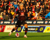Karl Friðleifur klippir inn á völlinn frá kantinum og fer í skotið en boltinn svífur hátt yfir.