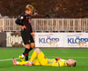 Litla skógarhlaupið! Pálmi kemur virkilega langt út úr markinu til að stoppa langan bolta hjá Stjörnunni. Hann lendir í alvöru pressu frá Stjörnumönnunum, en nær að redda sér. Hann hefur fengið eitthvað högg þarna í leiðinni því hann leggst svo í grasið og það þarf að hlúa að honum.