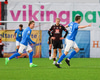 Víkingar með fyrstu alvöru sókn leiksins. Ari er með boltan út á vinstri kanti og leggur boltan á fjær. Þar nær Aron skallanum en framhjá markinu.