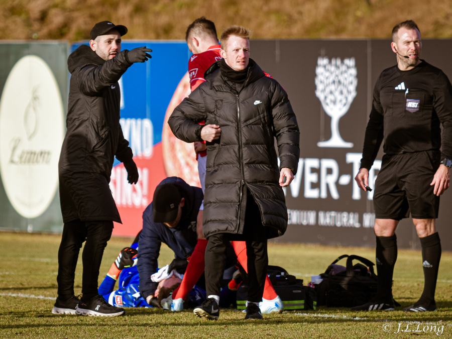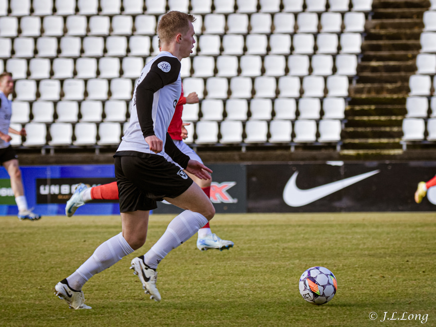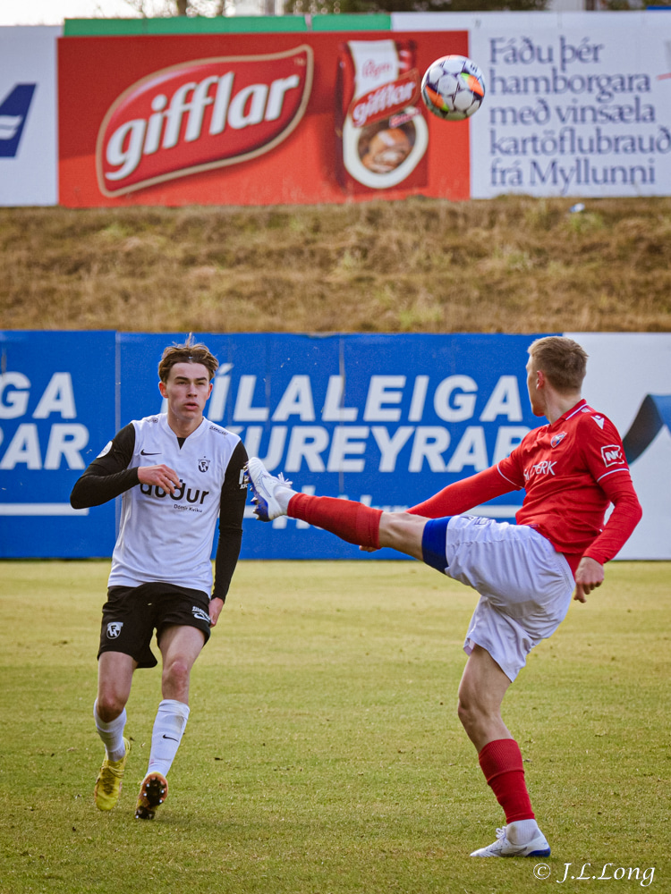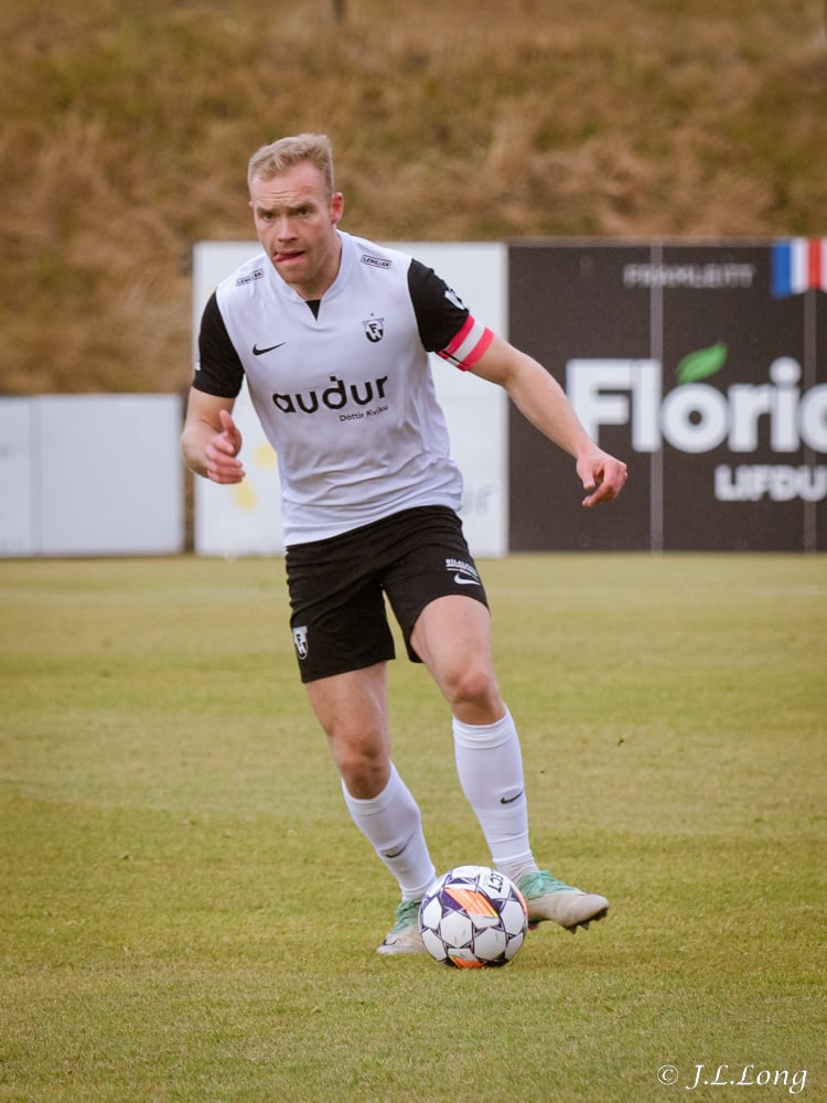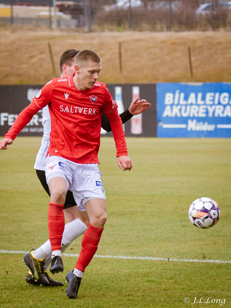 Kristján Flóki með heldur slaka sendingu fyrir sem Jakob Franz missir undir sólann en blessunarlega fyrir hann þá er Orri Sigurður fyrir aftan og hann kemur boltanum frá.