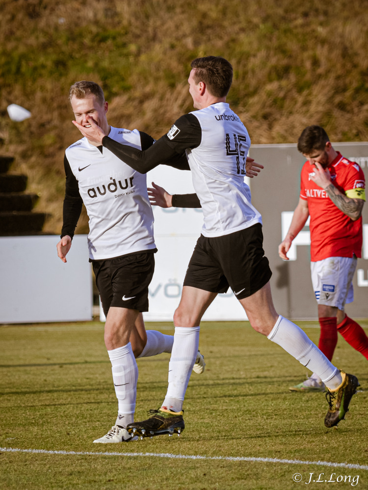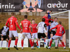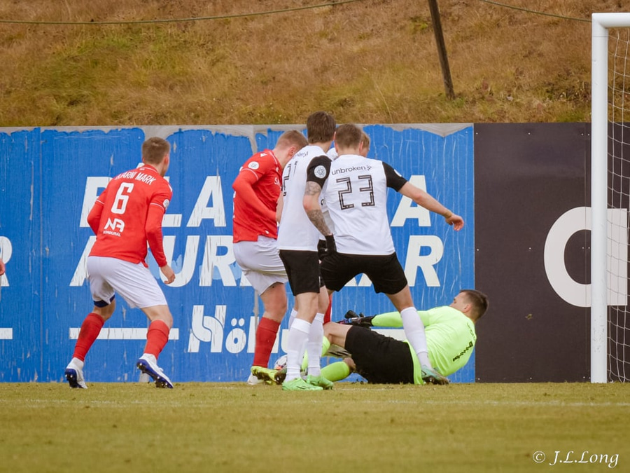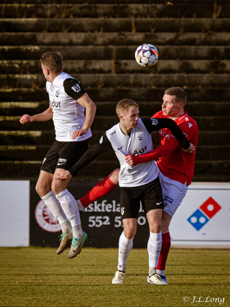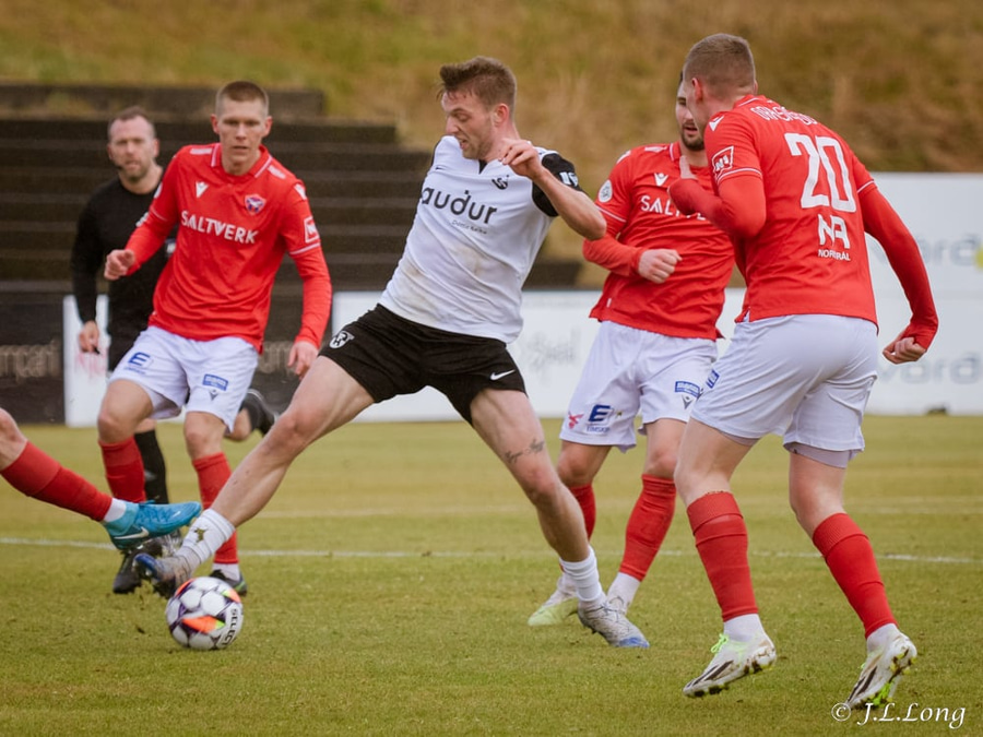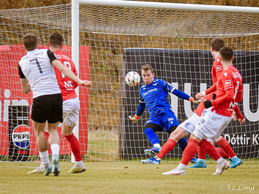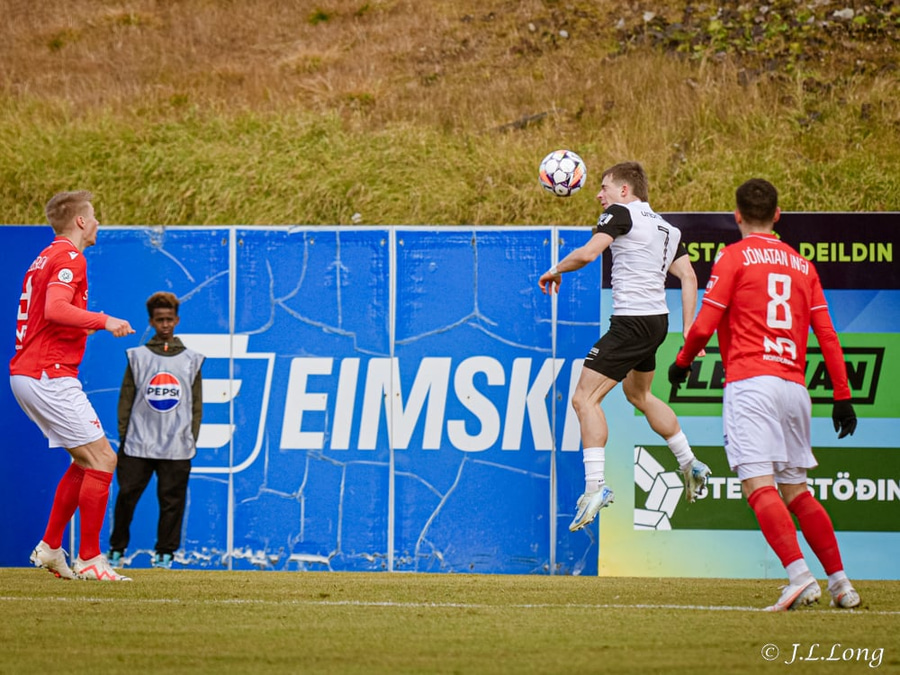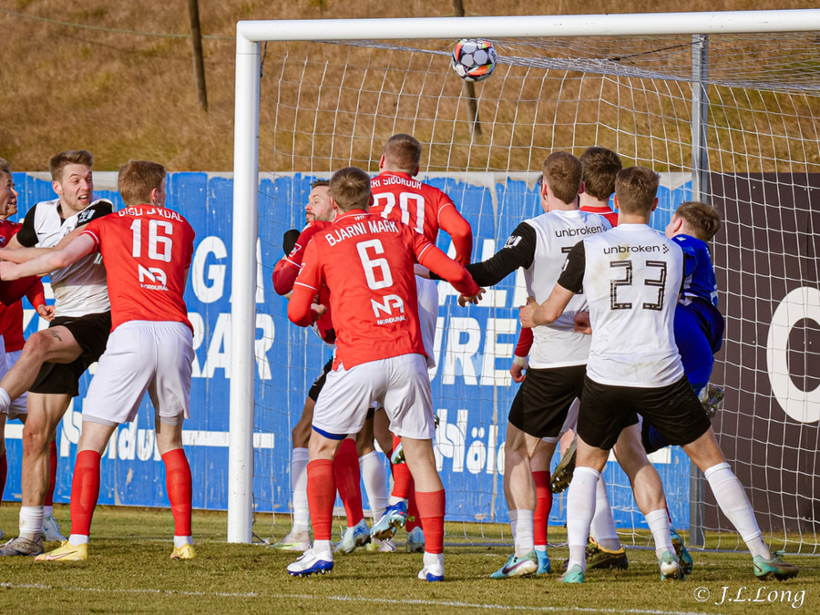 Sýndist það vera Orri Sigurður sem verður fyrir því óláni að skora í eigið net.