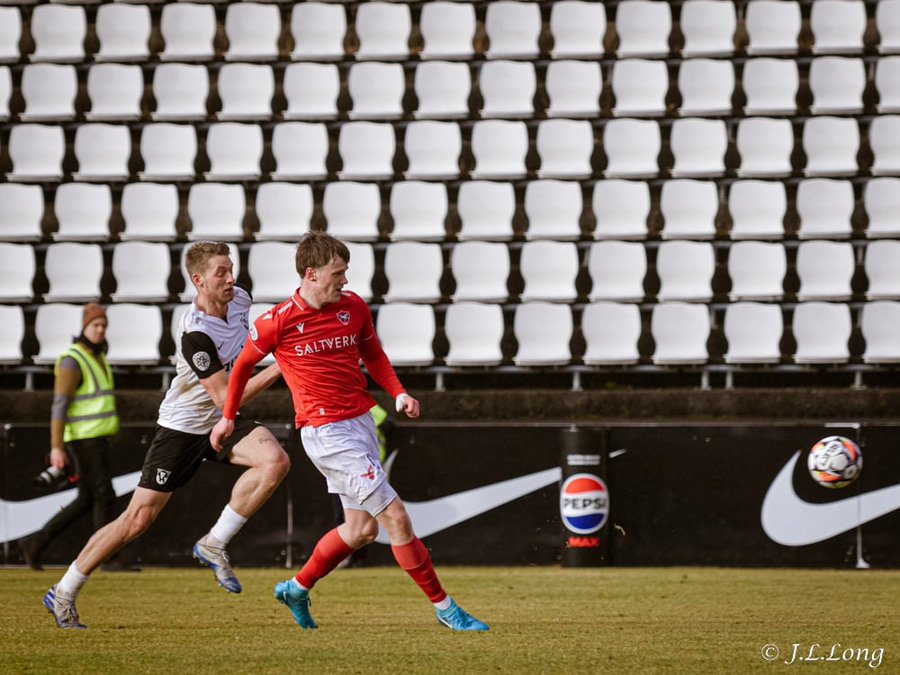 Albin Skoglund með flotta rispu og kemur sér inn á teig og á fastan bolta fyrir sem fer af Gylfa Þór í Sindra Kristinn og aftur fyrir.