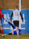Gylfi Þór með skot sem Sindri Kristinn er í smá vandræðum með en heldur þó boltanum.