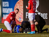Ögmundur liggur eftir samstuð við Sigurð Bjart.
