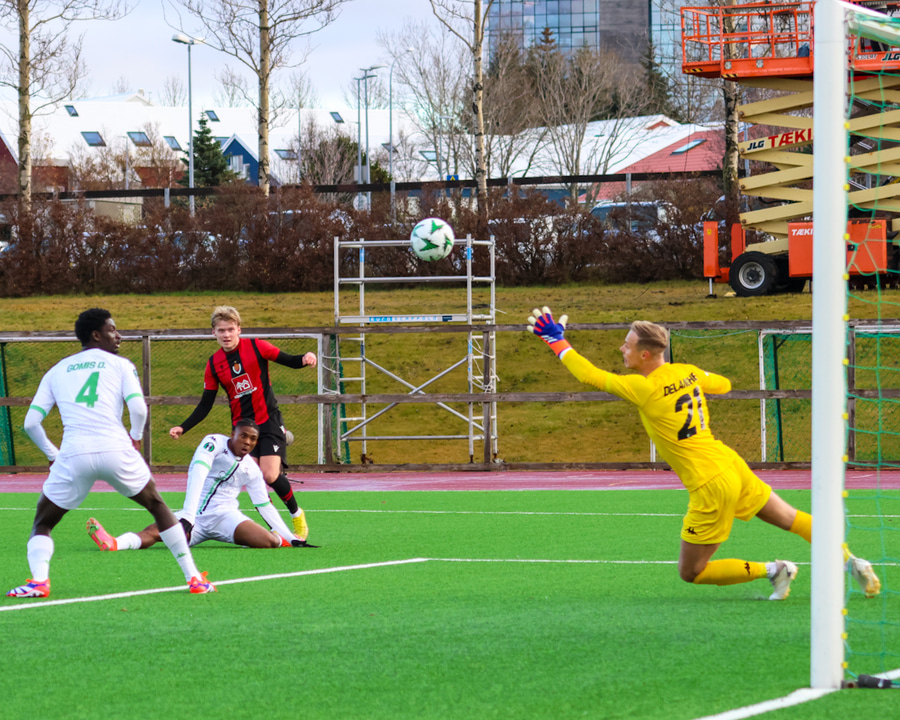 Djuric tapar boltanum á hættulegum stað, Denkey rennir boltanum á Olaigbe sem er einn við vítateig og klárar vel framhjá Ingvari.