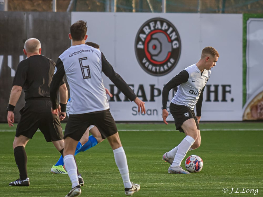 Óli Valur með flott skot sem endar rétt framhjá markinu. Strákurinn búinn að vera flottur í dag.