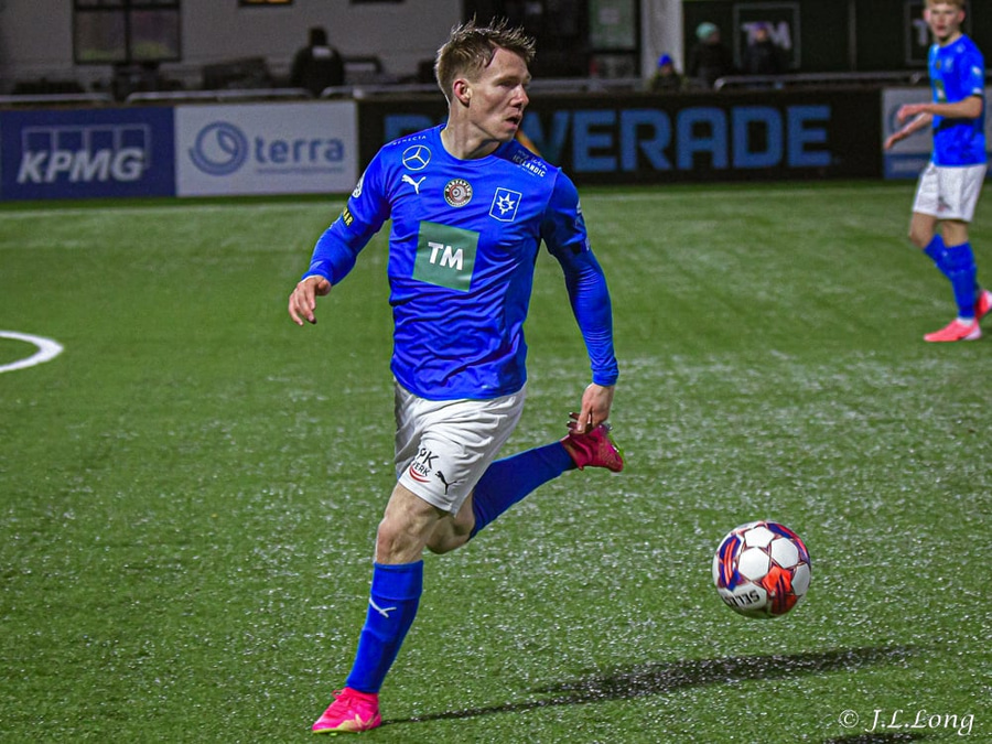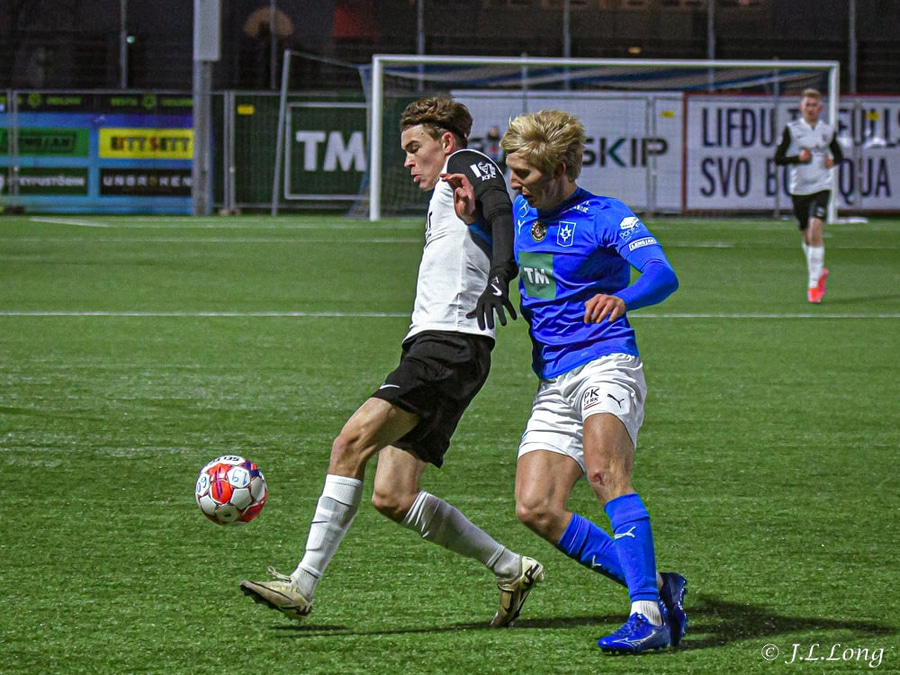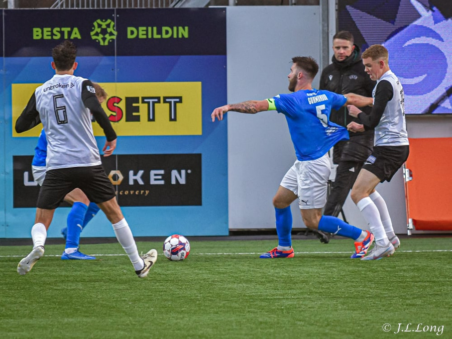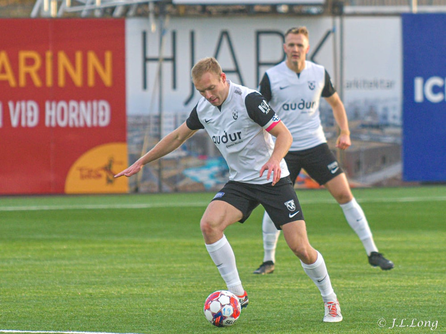 Kjartan með fyrirgjöf inn í teginn sem Sigurður nær til, en skallar boltanum framhjá markinu.
