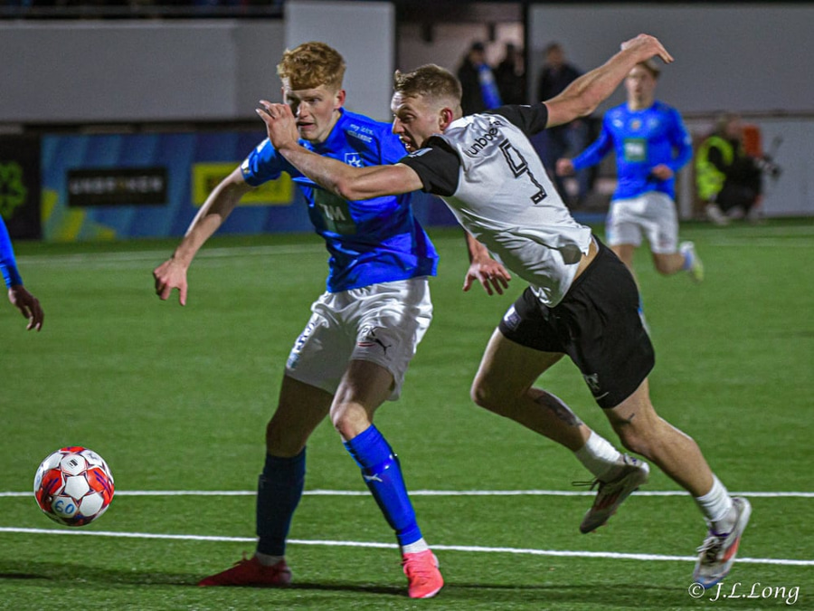Óli Valur með frábæra fyrirgjöf inn í teiginn sem Emil reynir að skalla að marki, en rétt svo missir af boltanum í loftinu.