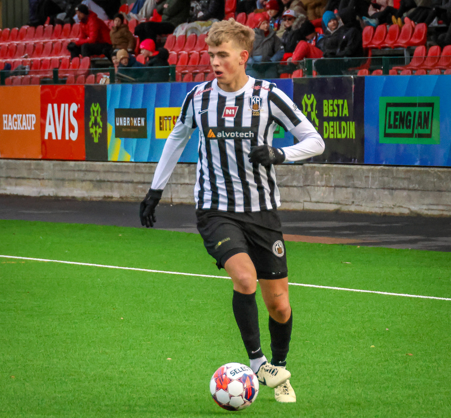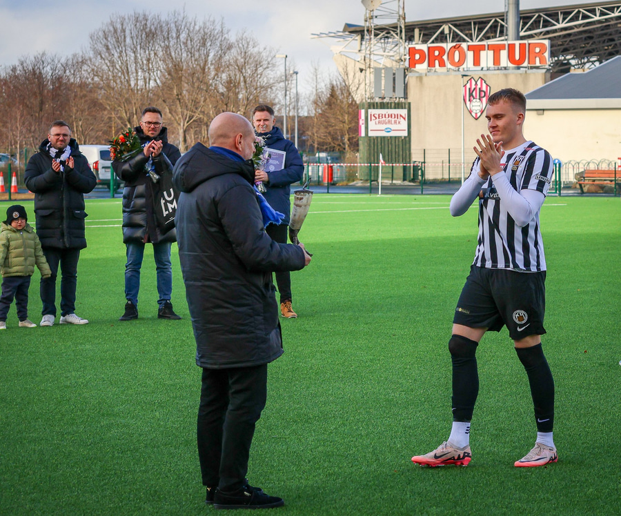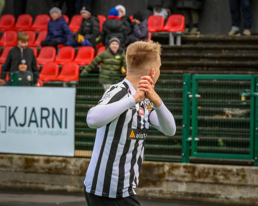 Benóný Breki er valinn efnilegasti leikmaður Bestu-deildar karla og fær hann því Flugleiðahornið fræga.