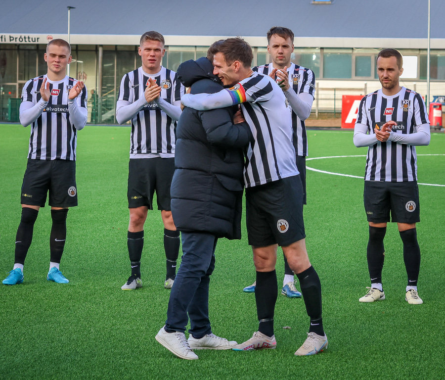 Theódór Elmar búinn að leika sinn síðasta leik. Stuðningsmenn KR klappa vel fyrir Emma.