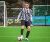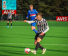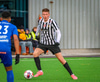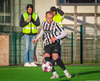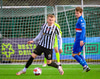 Theodór Elmar keyrir í George Nunn og fær réttilega að líta gula spjaldið.