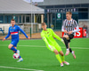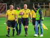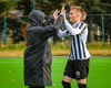 Þorsteinn tekur Benóný Breka niður og fær gult spjald að launum.