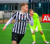 Luke Rae gefur boltan fyrir á Aron Sig sem er við markteig. Aron hittir boltann illa og Petersen handsamar boltann að lokum.