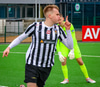 Jói rennir boltanum í gegn á Benóný sem klárar vel og bætir markametið fræga.
