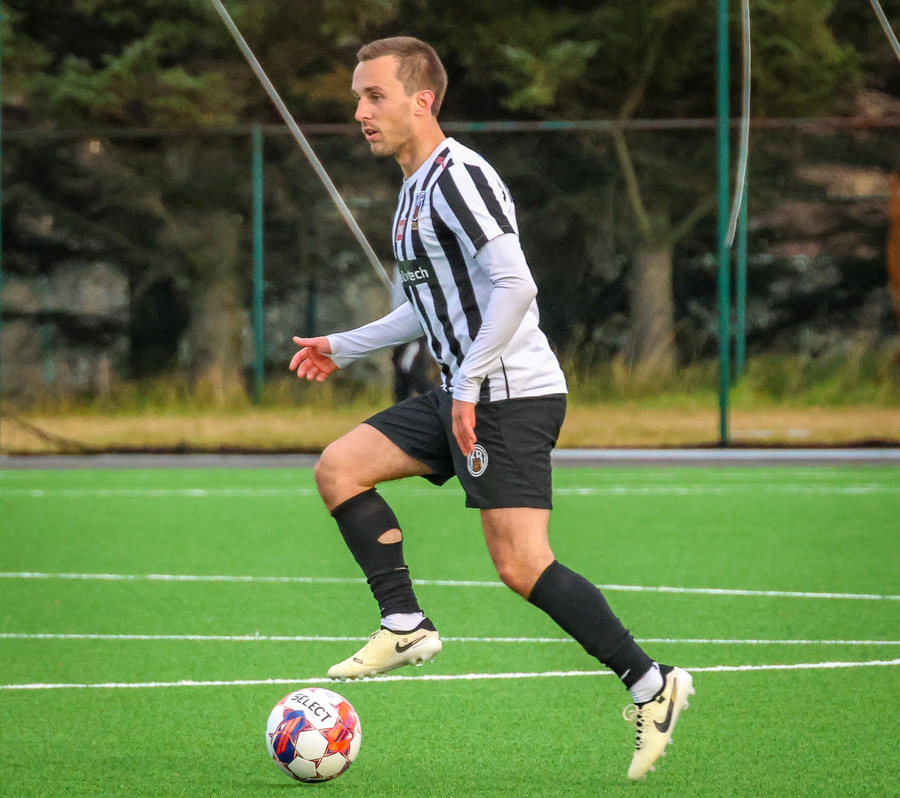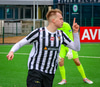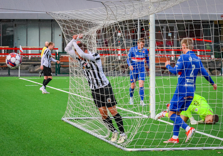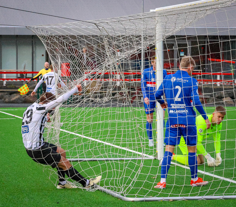 Sleppur í gegn og tekur skotið sem Christoffer ver vel. Benóný eflaust svekktur með að hafa ekki nýtt færið betur.