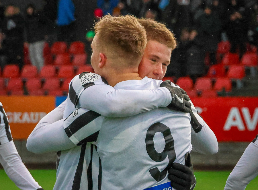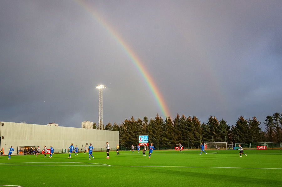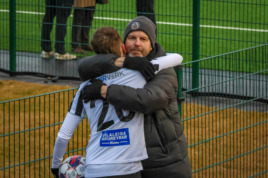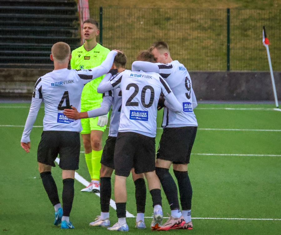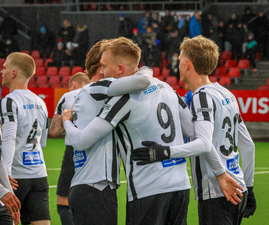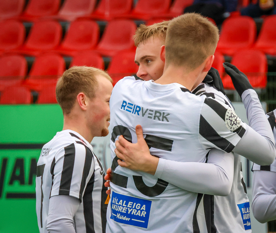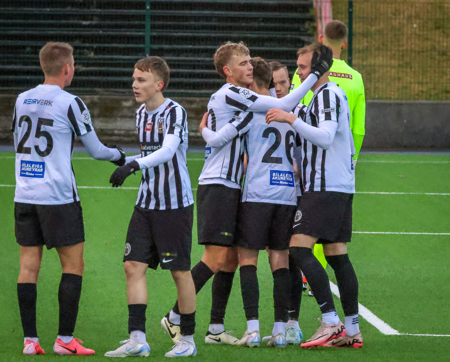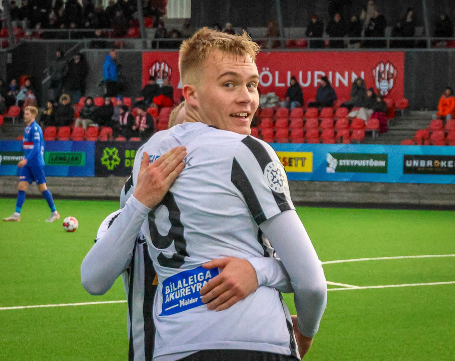 Aron Sig með sturlaða sendingu í gegn á Benóný Breka sem setur boltann framhjá úr góðri stöðu.