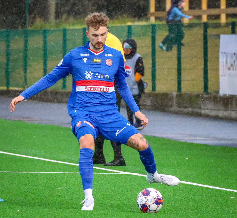 HK fær aukaspyrnu í fyrirgjafastöðu. Birnir Breki liggur niðri og þarfnast aðhlynningar.
