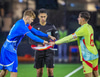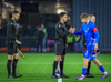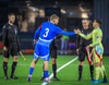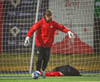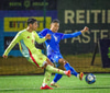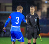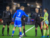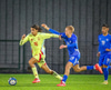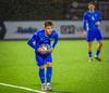 Hætta við mark Íslands, Sigurður Jökull ver en heldur ekki boltanum. Á endanum nær Ísland að koma boltanum í burtu.