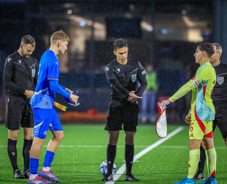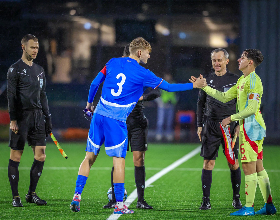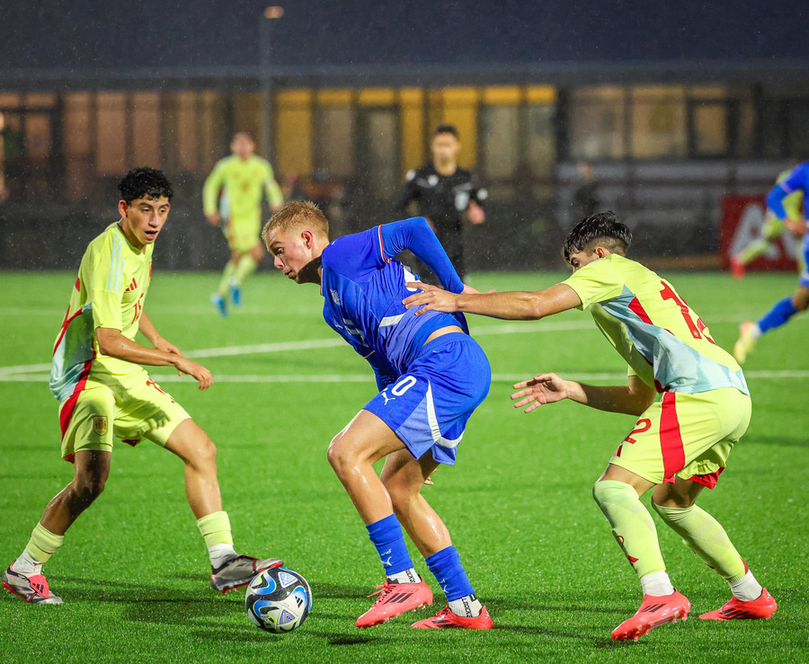 Góðan og gleðilegan daginn og velkomin með okkur á AVIS-völlinn í Laugardal þar sem síðasti leikurinn í riðli Íslands í undankeppni EM U17 landsliða fer fram. Ísland og Spánn mætast en bæði lið eru þegar búin að tryggja sér sæti í seinni umferð undankeppninnar. Bæði lið eru með sex stig en Spánn er á toppnum með betri markatölu, 9-0 gegn markatölunni 7-2 hjá Íslandi.