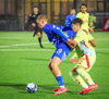 Iago Barreiros með marktilraun úr teignum, frekar laust skot sem Sigurður Jökull á ekki í nokkrum vandræðum með að verja.