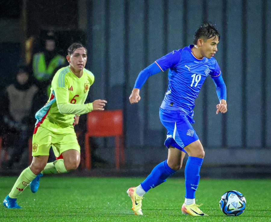 Asier Bonel komst framhjá Katli Orra og í hættulegt færi en skaut framhjá fjærstönginni. Sóknarhugur í Spánverjum í upphafi seinni hálfleiksins.