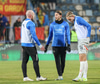 Arnór Ingvi sest á völlinn og kveinkar sér.