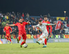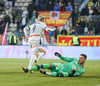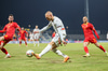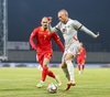 Vladimir Jovovic að vinna sig í færi í teignum en á verulega slakt skot sem siglir hættulaust framhjá markinu.