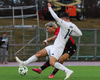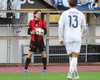 Hümmet fær sendingu í gegn en Ingvar er á tánum og sópar boltanum frá.