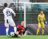 Davíð Örn lúðrar boltanum fram frá miðjum vallarhelming Víkings og kemur markverði Djurgården á óvart sem þarf að hafa sig nokkuð til svo hann handsami boltann, óvænt tilraun.