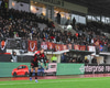 Liðin ganga til vallar, stuðningsmenn Djurgården strax byrjaðir að syngja og tralla.