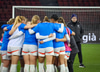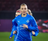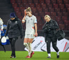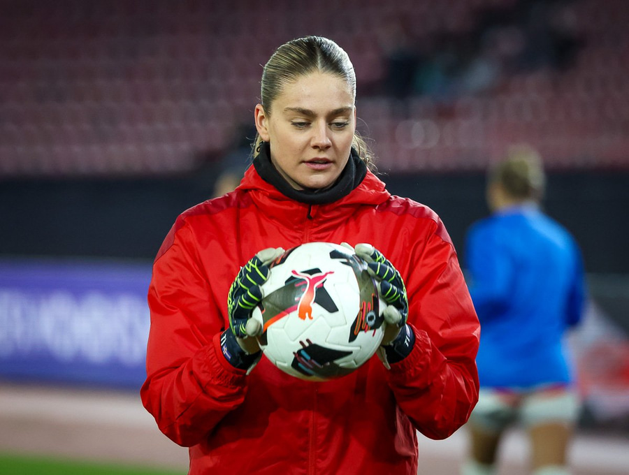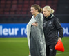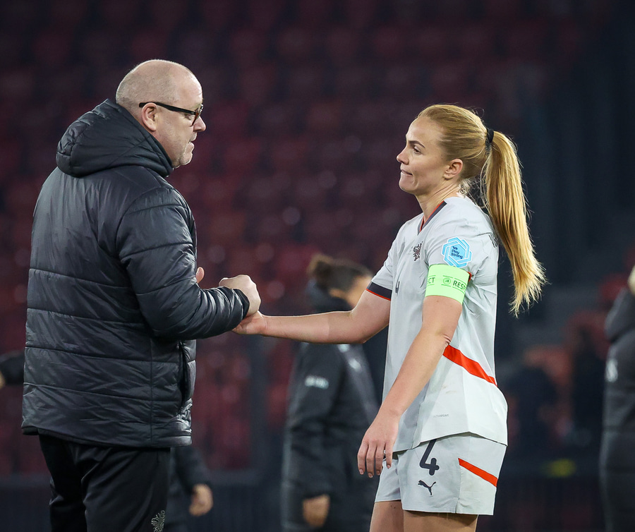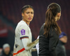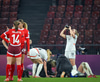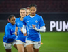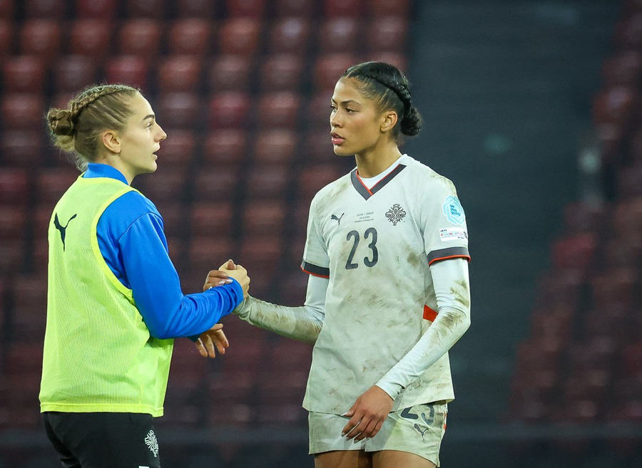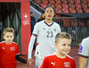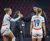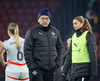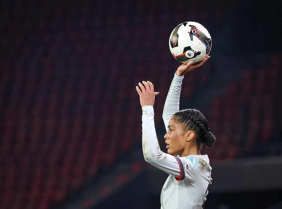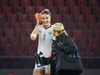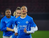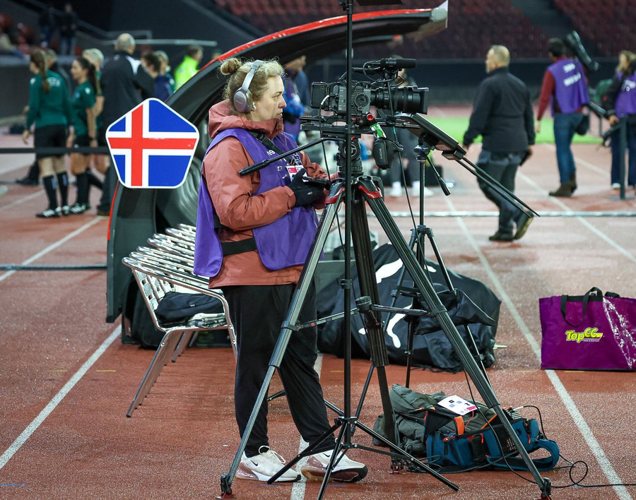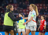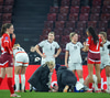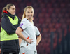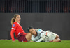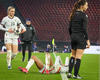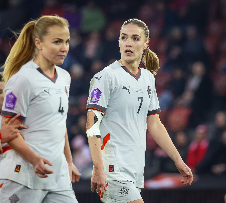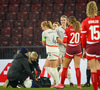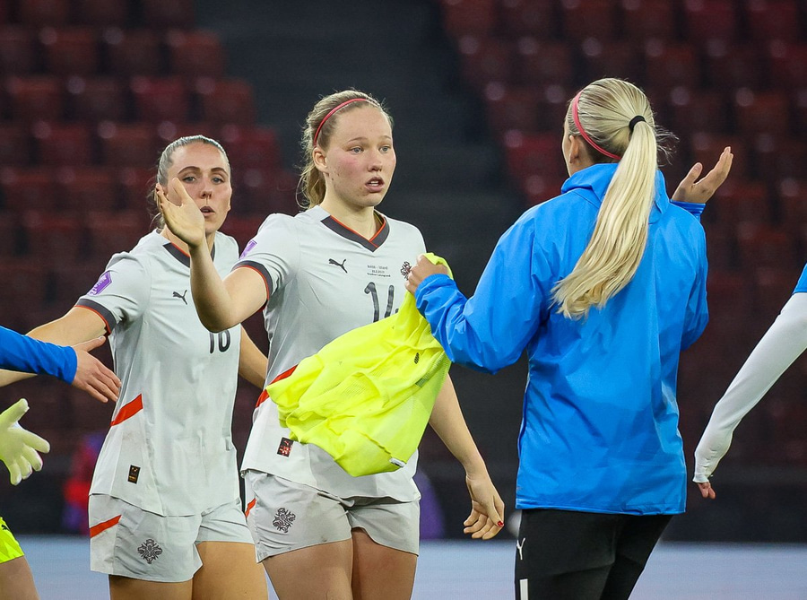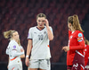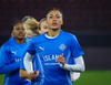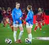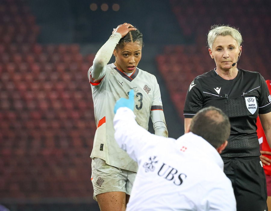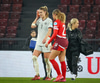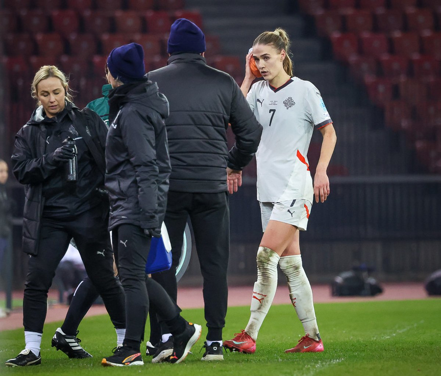 Sveindís Jane fær ekki að taka innkastið og þarf að bíða úti við hliðarlínu. Spes í ljósi þess að hún fékk enga aðhlýningu þegar hún og Luana Buehler skullu saman.