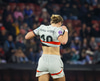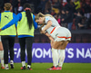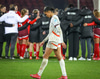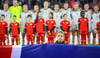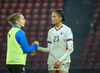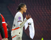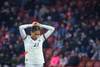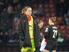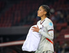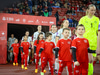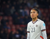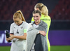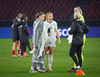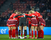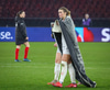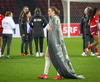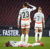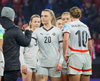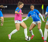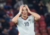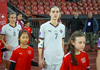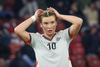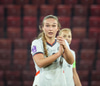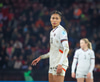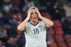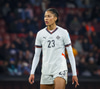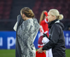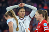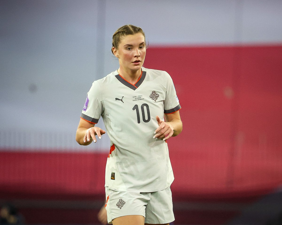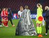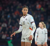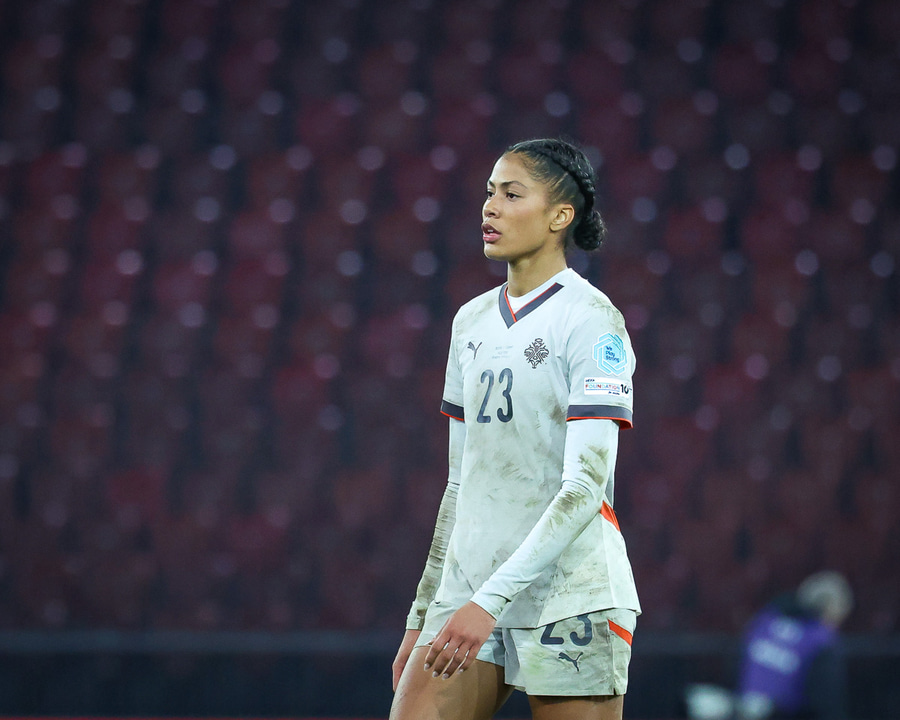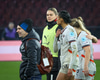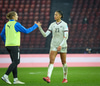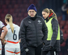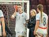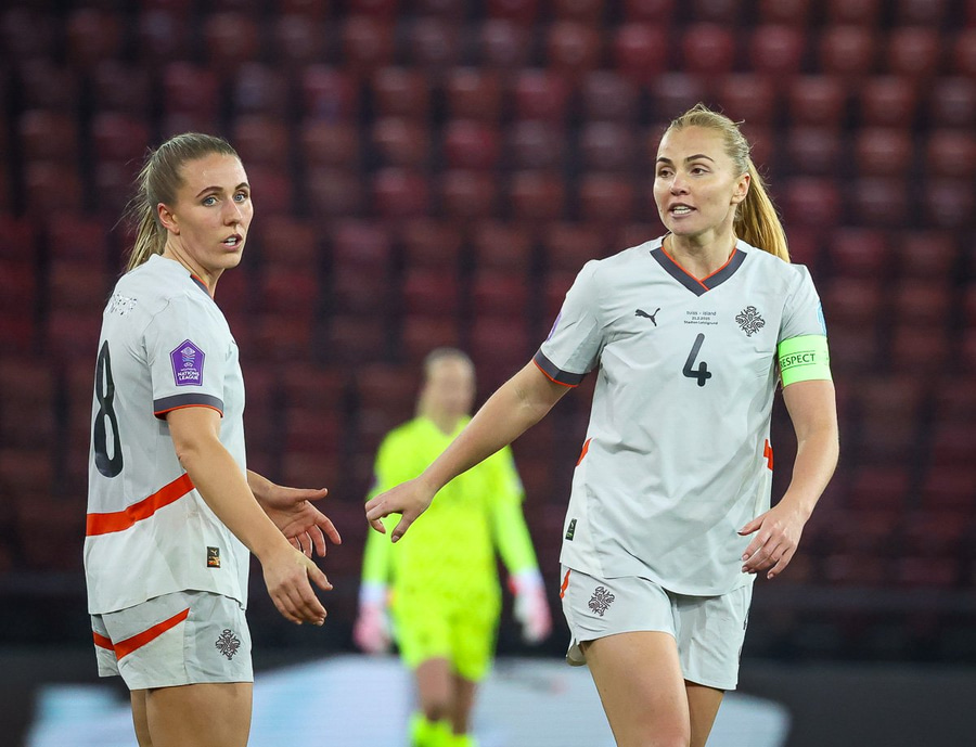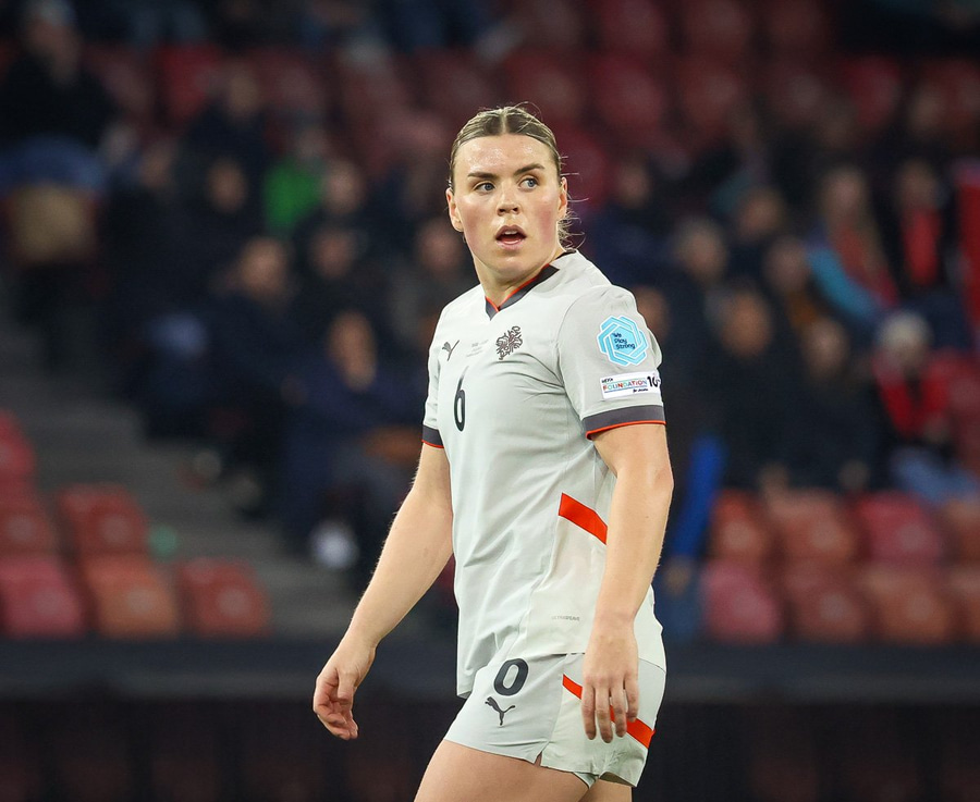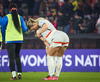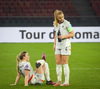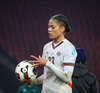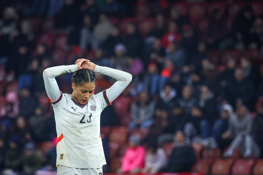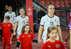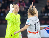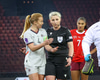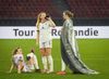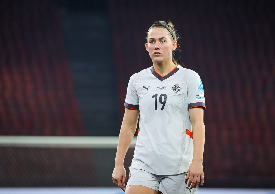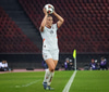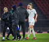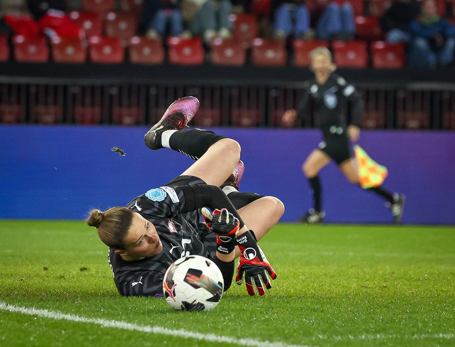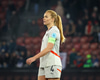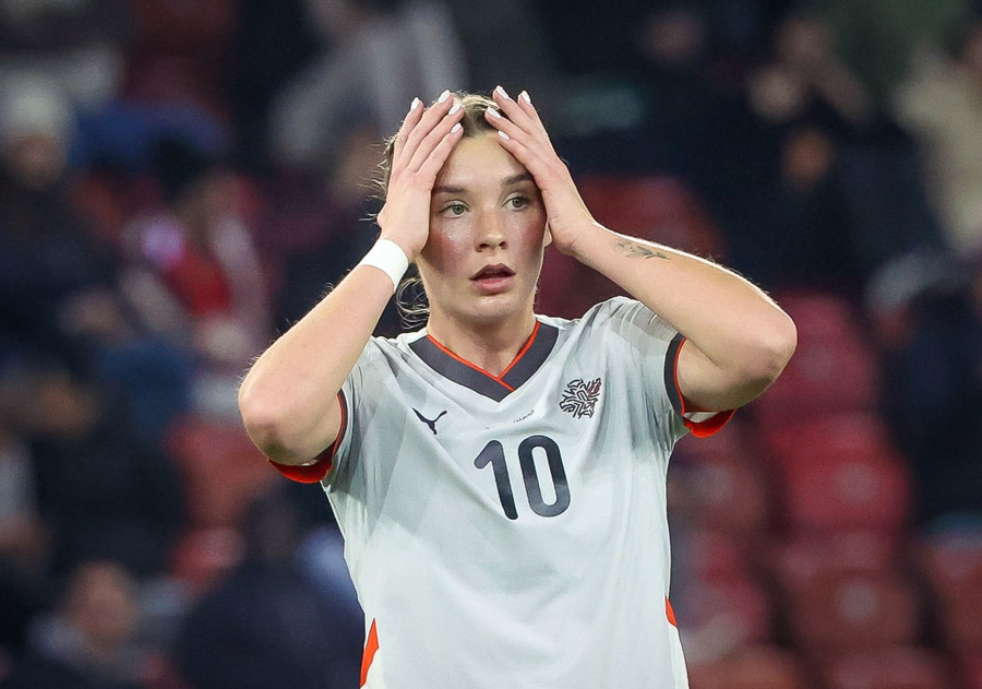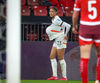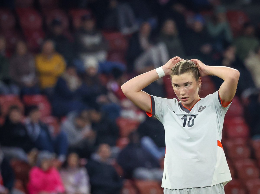 Sveindís Jane fær ekki að taka innkastið og þarf að bíða úti við hliðarlínu. Spes í ljósi þess að hún fékk enga aðhlýningu þegar hún og Luana Buehler skullu saman.