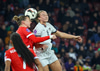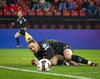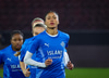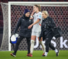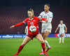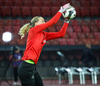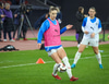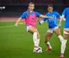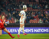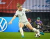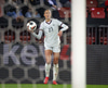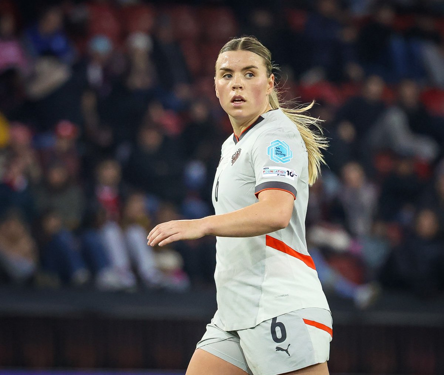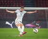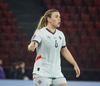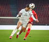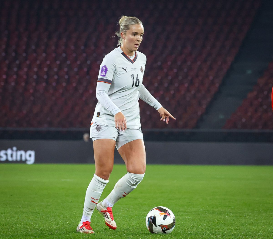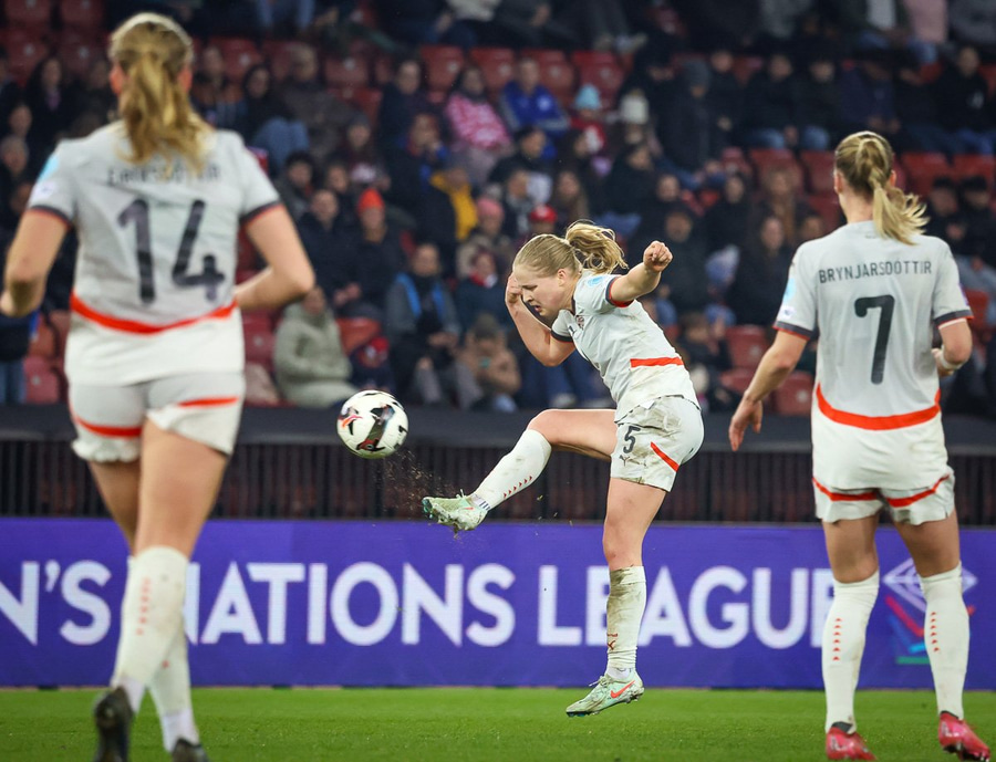 Noemi Ivelj reynir fast skot sem fer í höfuðið á Dagný Brynjarsdóttur og hún liggur eftir.