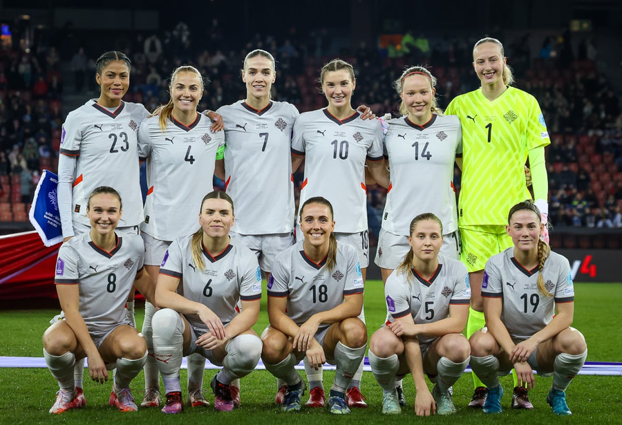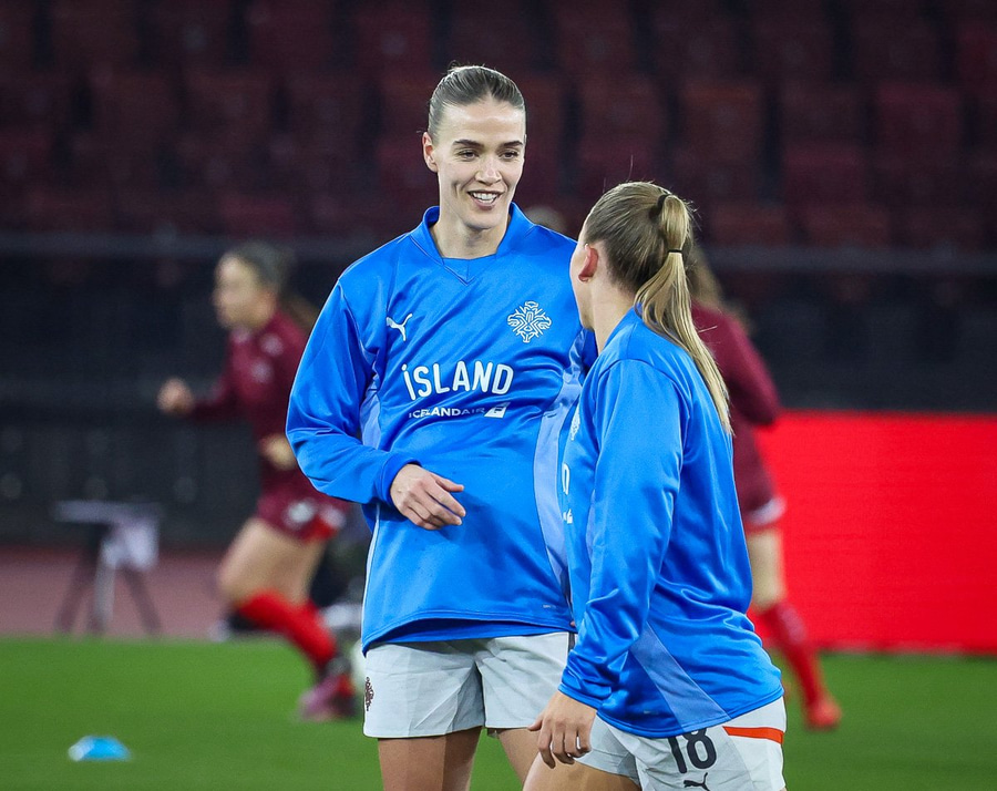 Cecilía Rán stendur milli stanganna en fyrir framan hana eru þær Guðrún Árnadóttir, Glódís Perla, Ingibjörg Sigurðardóttir og Sædís Heiðarsdóttir í varnarlínunni. Á miðsvæðinu verða þær Alexandra Jóhansdóttir, Dagný Brynjarsdóttir og Karólína Vilhjálmsdóttir.
