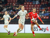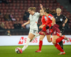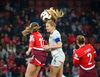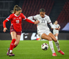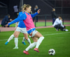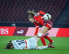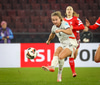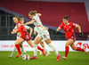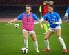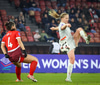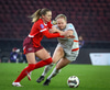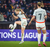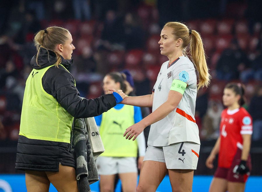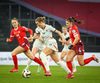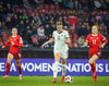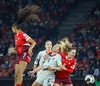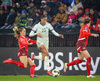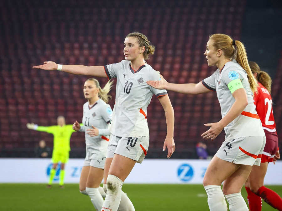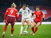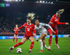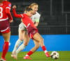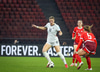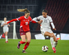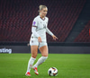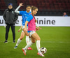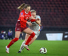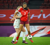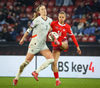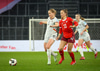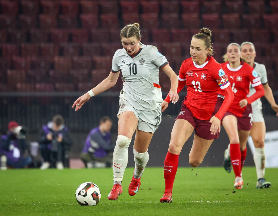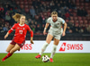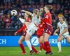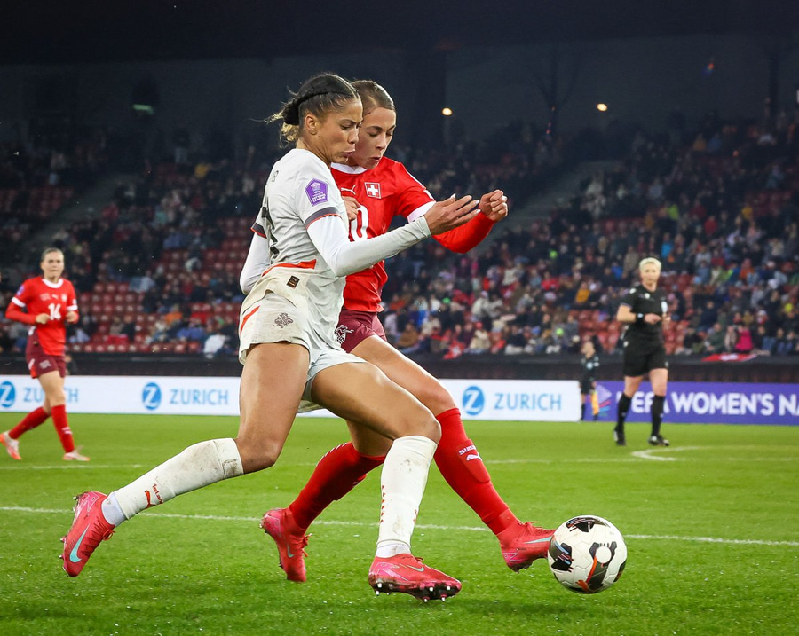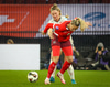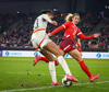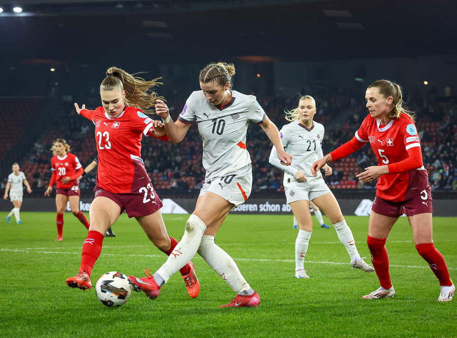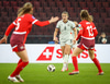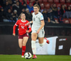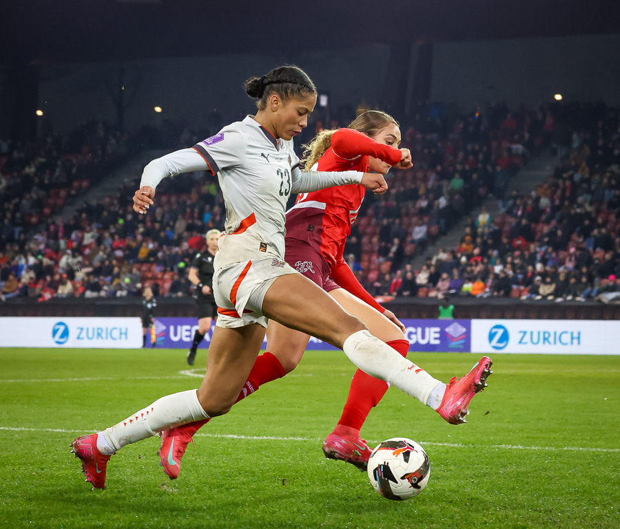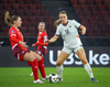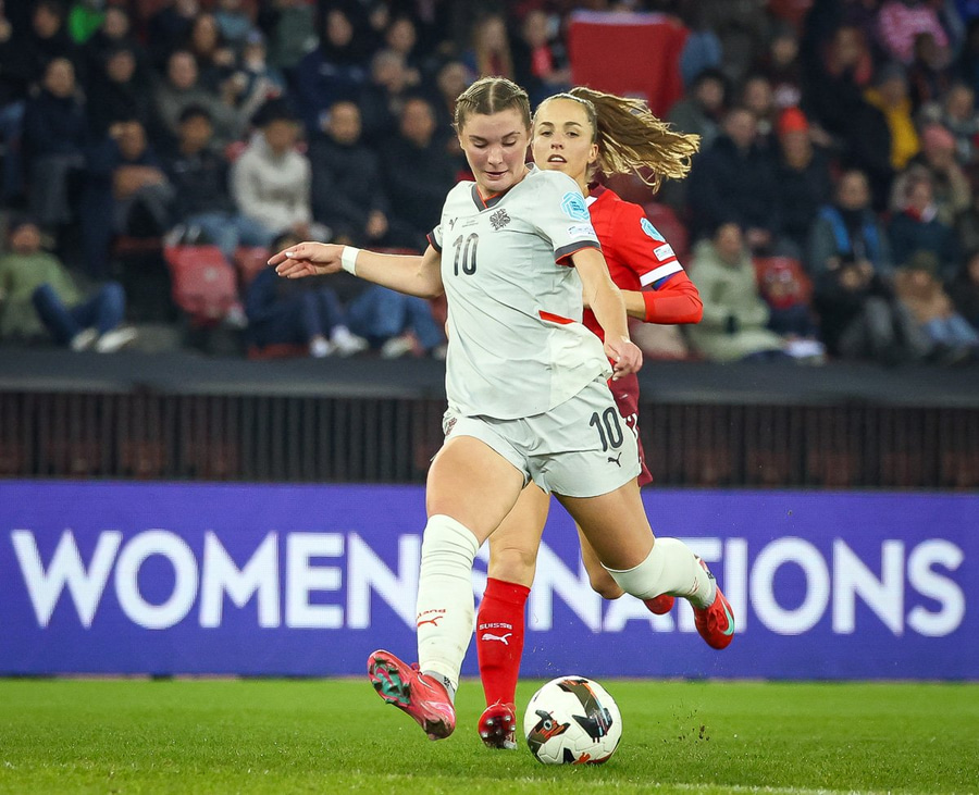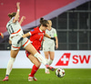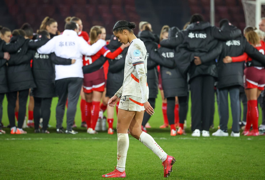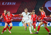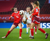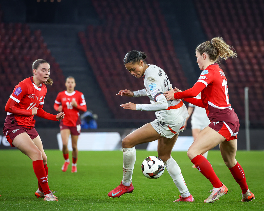 Langt innkast frá Sveindísi Jane en Sviss kemur þessu burt. Karólína Lea eltir og það er hangið í henni en ekkert dæmt.