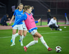 Emilía Kiær kemur á blindu hliðina á Viola Calligaris og nær svo skoti sem fer yfir.