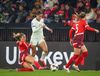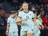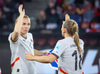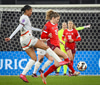 Sydney Schertenleib fer illa með Ingibjörgu en blessunarlega nær ekki að gera neitt meira en það. Var í hörku færi til að skjóta bara sjálf en reyndi að leggja boltann í teiginn en Íslenska liðið kemur þessu frá.