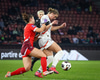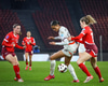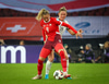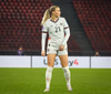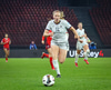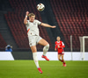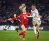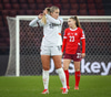 Sveindís Jane með fyrirgjöf fyrir markið en skallin frá Glódísi Perlu hittir ekki á markið.