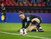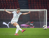 Íslenska liðið vinnur hornspyrnu. Karólína Lea tekur það stutt og fyrirgjöf fyrir markið sem Sviss kemur frá.