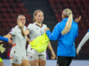 Karólína Lea með gott skot út við stöng en Elvira Herzog gerir vel og ver það í horn.