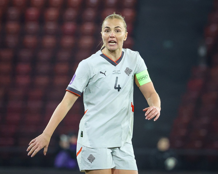 Hlín Eiríksdóttir byrjar úti hægra meginn en Emilía Ásgeirsdóttir á vinstri vængnum og þá byrjar Sveindís Jane upp á topp fyrir íslenska landsliðið í dag. Glódís Perla er að sjálfsögðu fyrirliði liðsins.