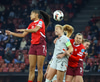 Iman Beney með boltann inni á teig Íslands en nær ekki að finna samherja og Íslenska liðið gríðarlega þétt.