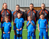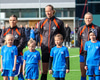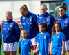 Silvia Gasperotti leiðir liðin til leiksk og áhorfendur rísa úr sætum.