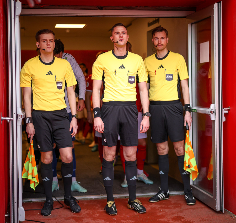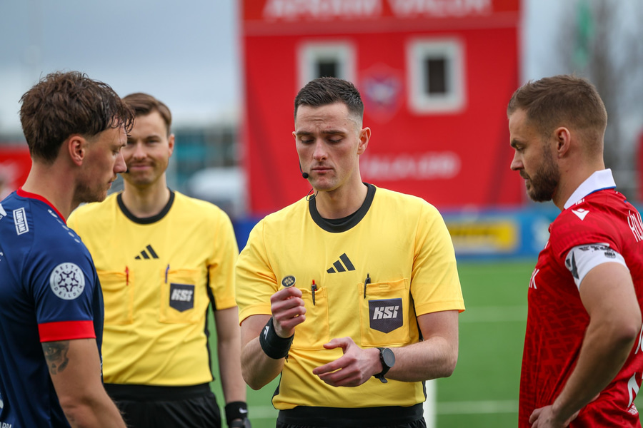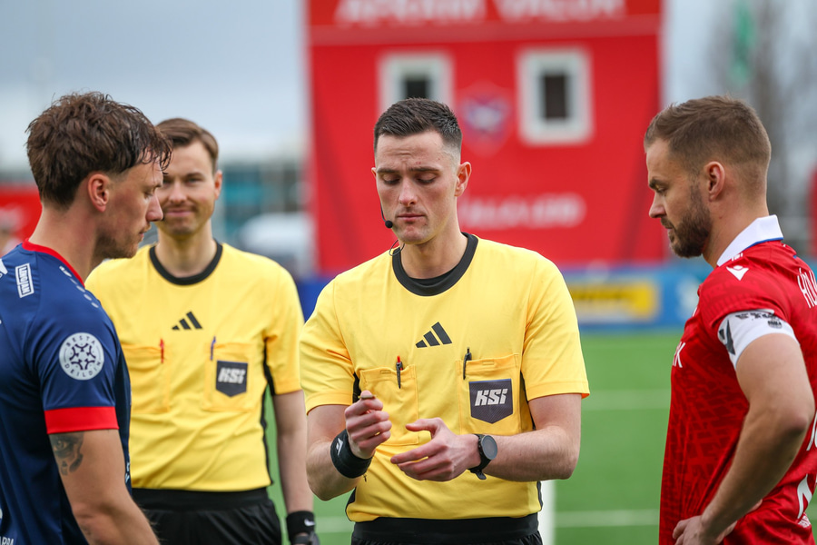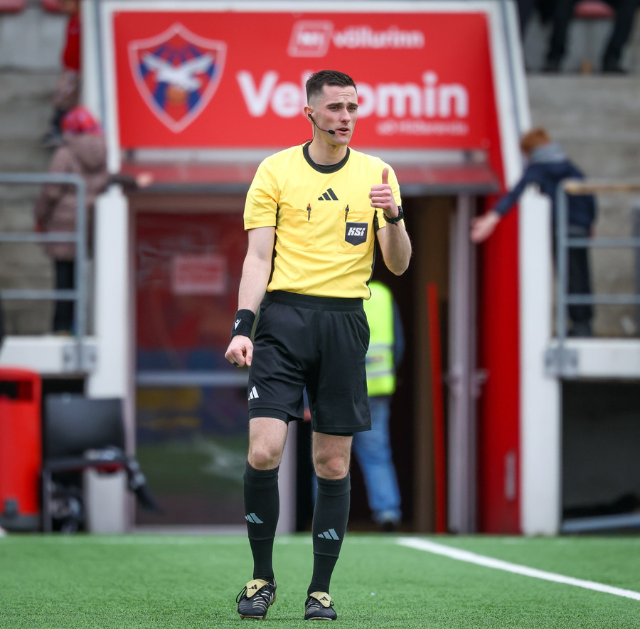 Honum til aðstoðar eru Guðmundur Ingi Bjarnason og Antoníus Bjarki Halldórsson. Þá er Vilhjálmur Alvar Þórarinsson varadómari og Gylfi Þór Orrason, sú mikla goðsögn, er eftirlitsmaður.