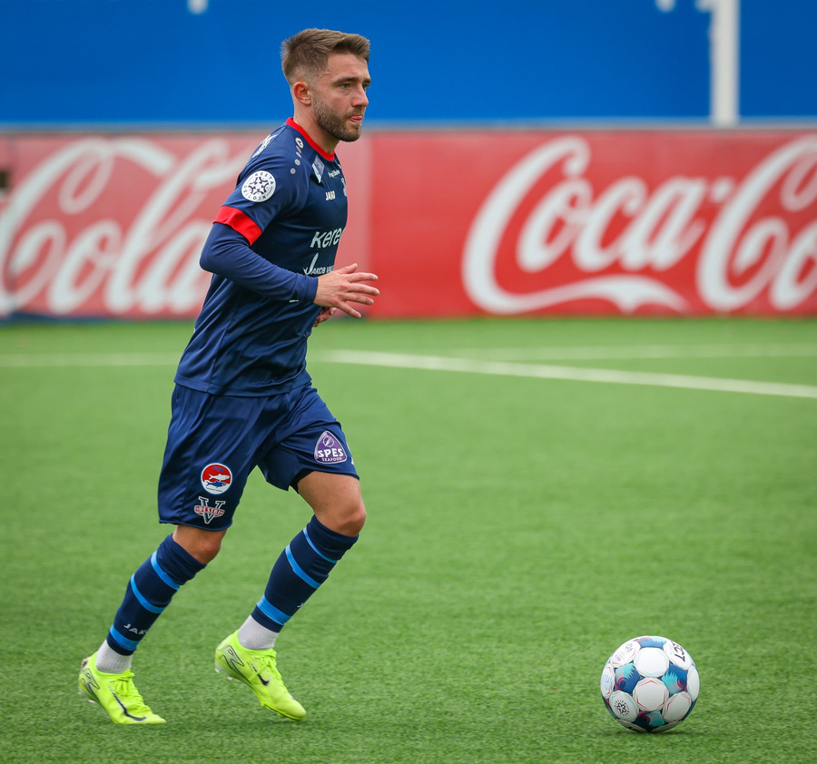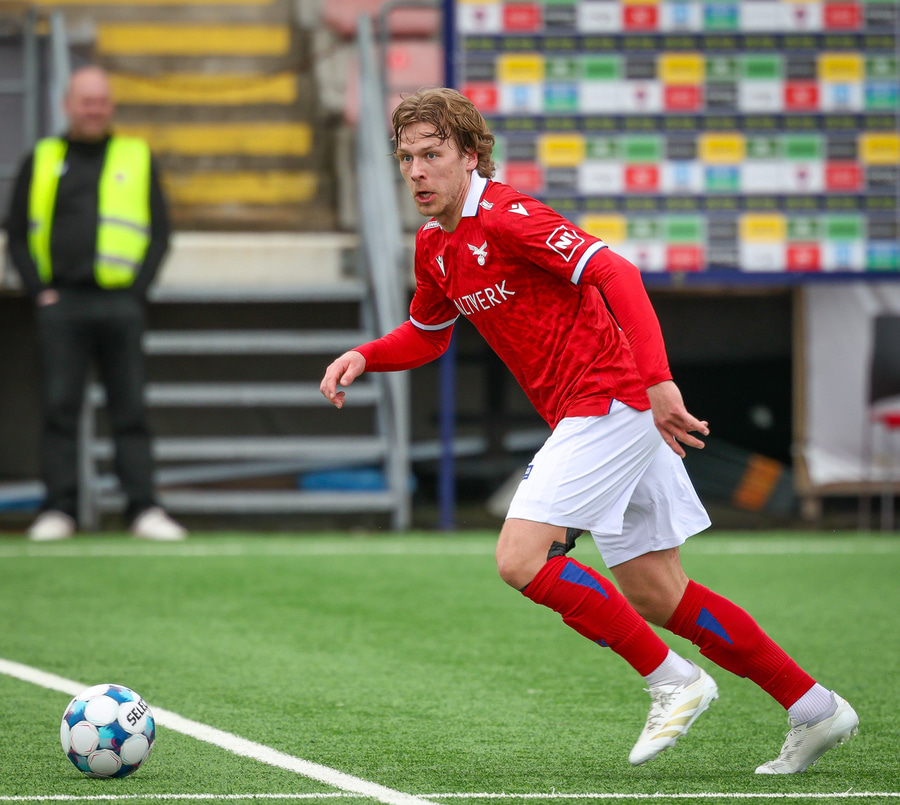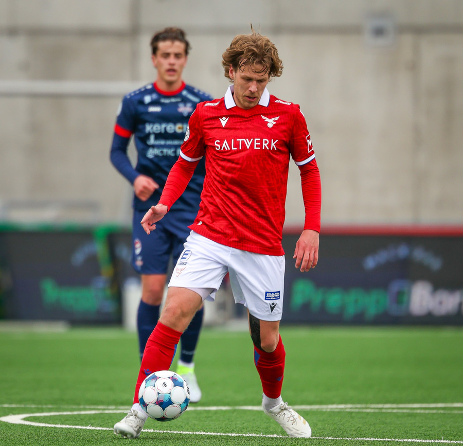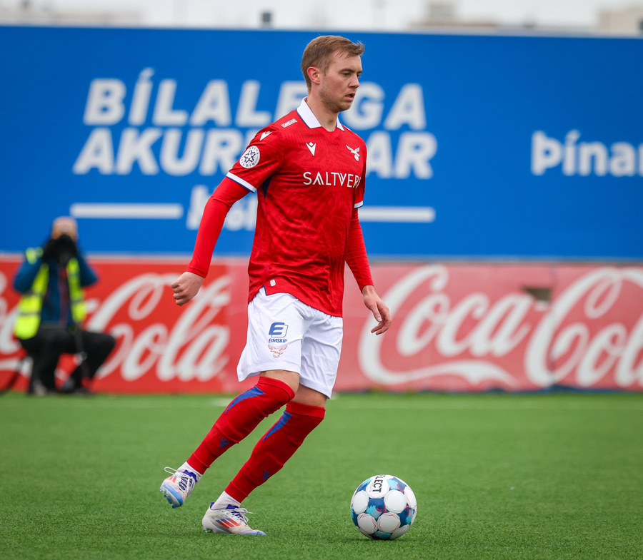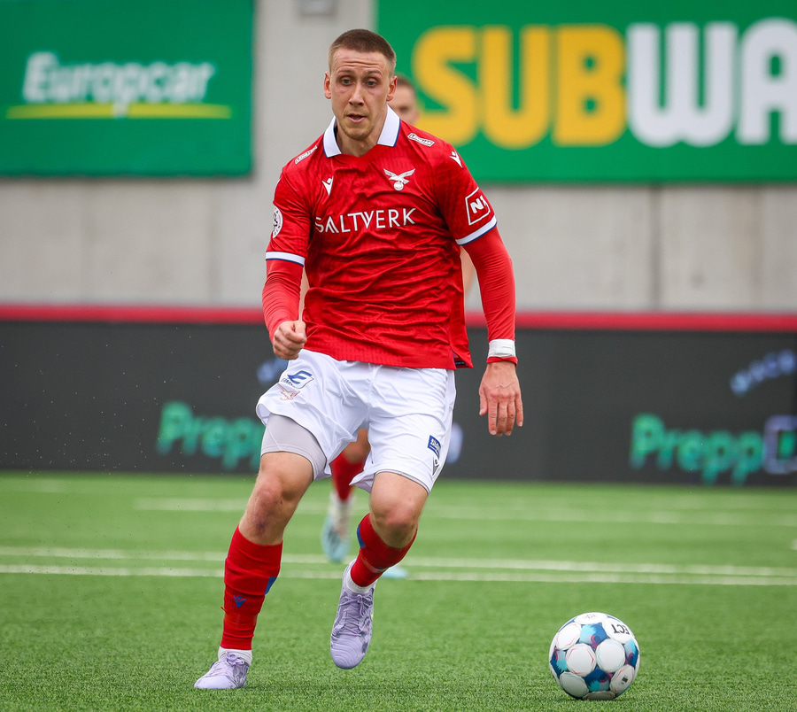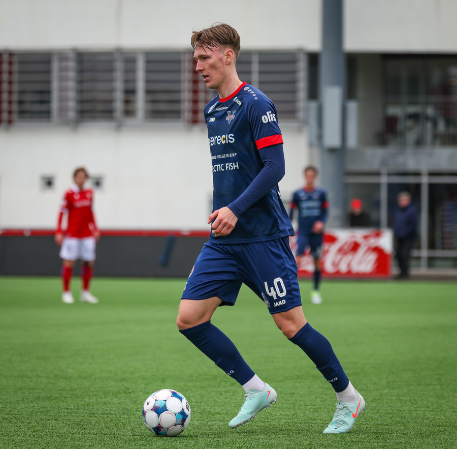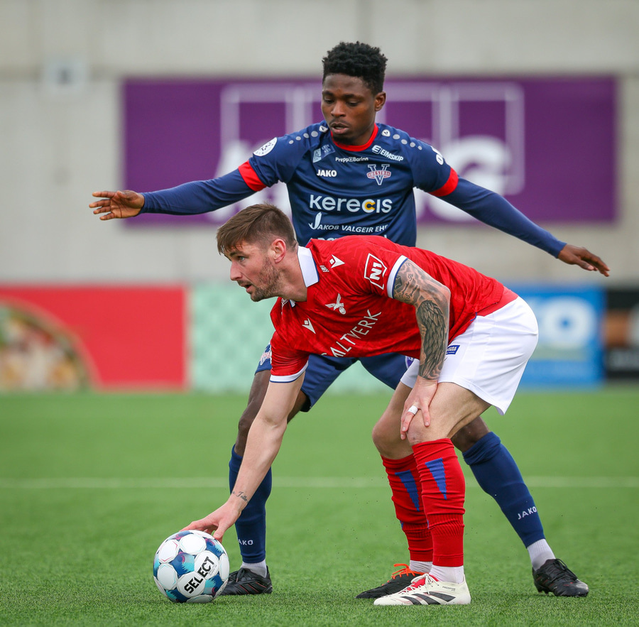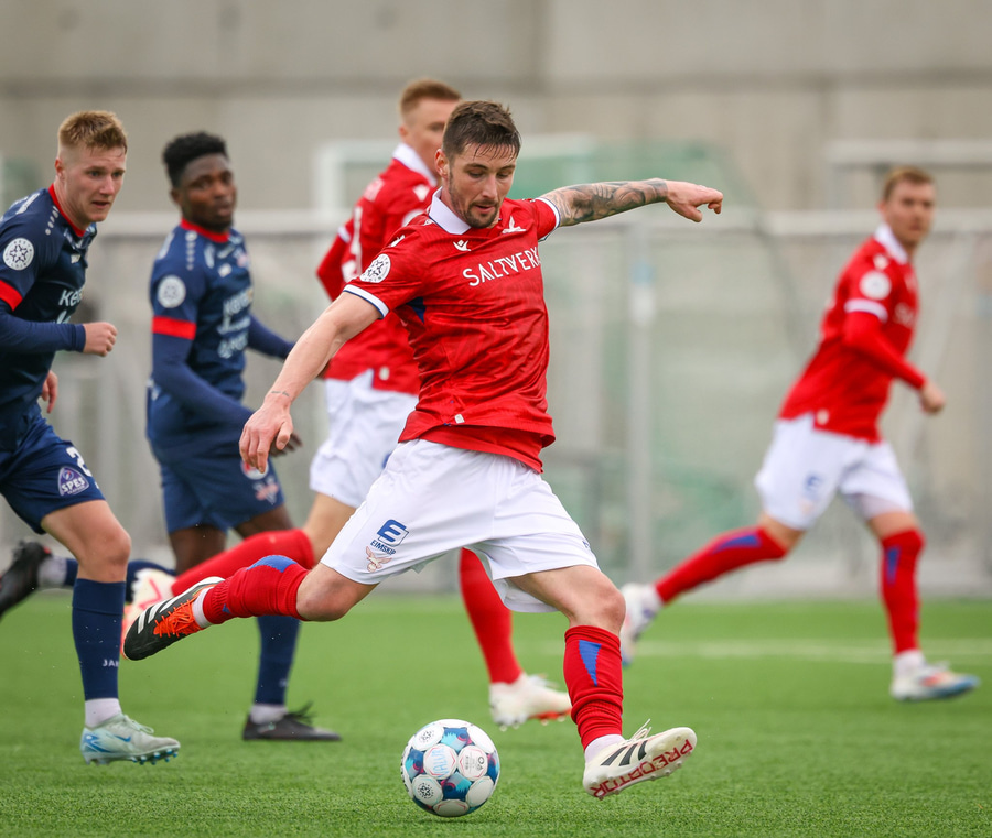 Anton Kralj kemst upp vinstri kantinn eftir flott samspil við Jeppe Pedersen. Anton á fína fyrirgjöf inn á Daða Berg sem nær skoti, sem berst aftur Anton. Hann setur boltann fyrir, þar sem Sergine Fall er mættur með seinni skipunum en skot hans frekar auðvelt fyrir Stefán Þór.