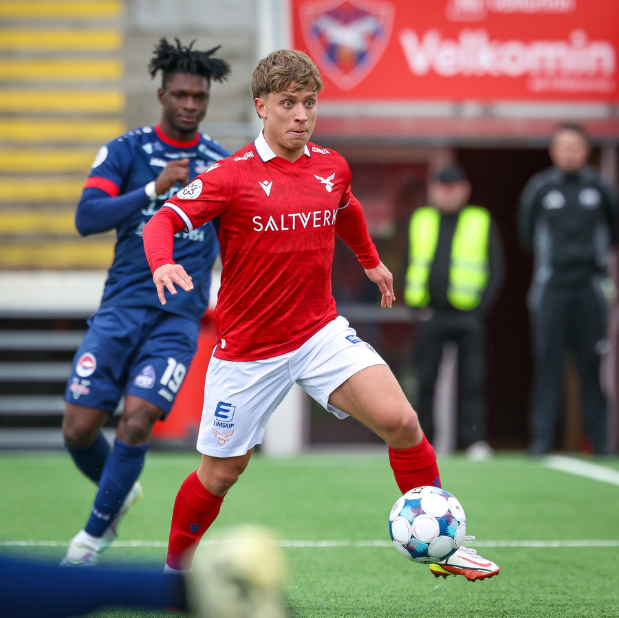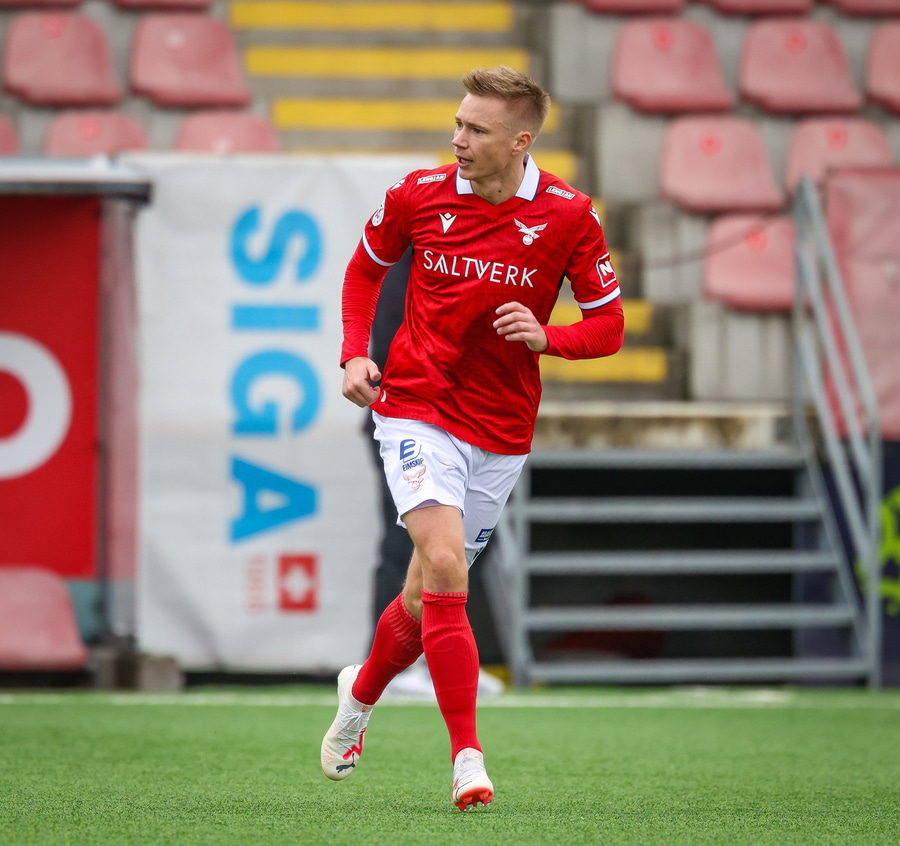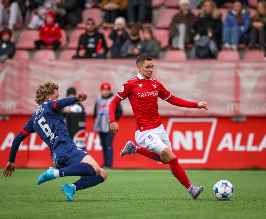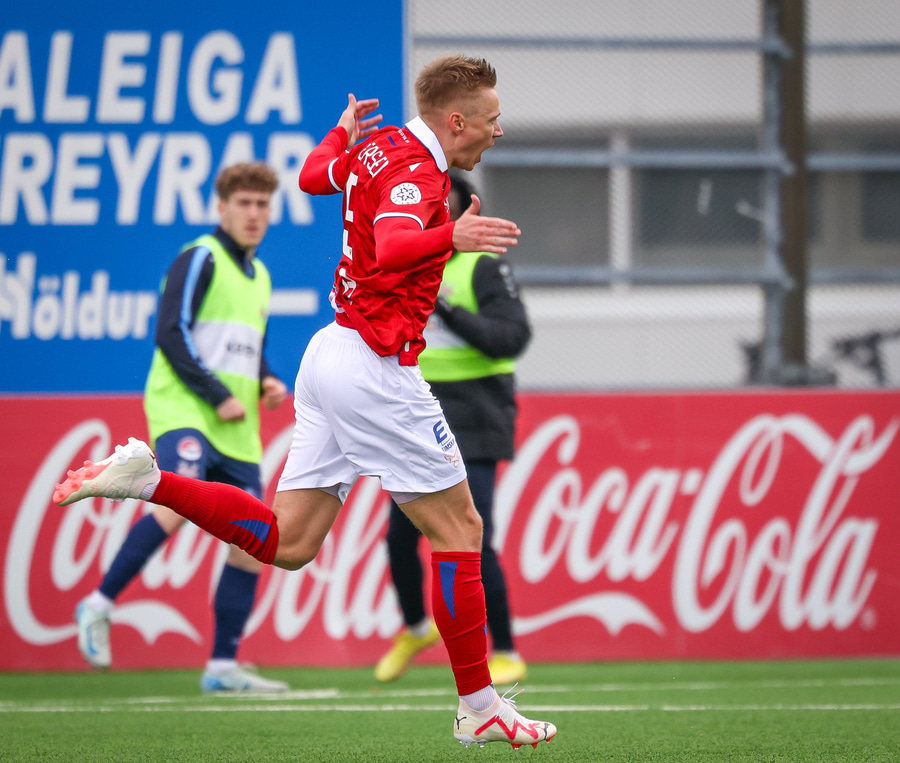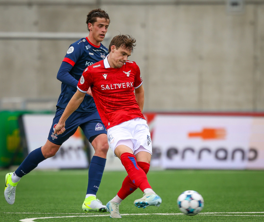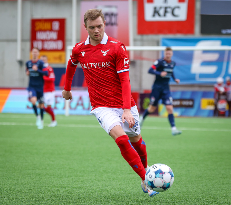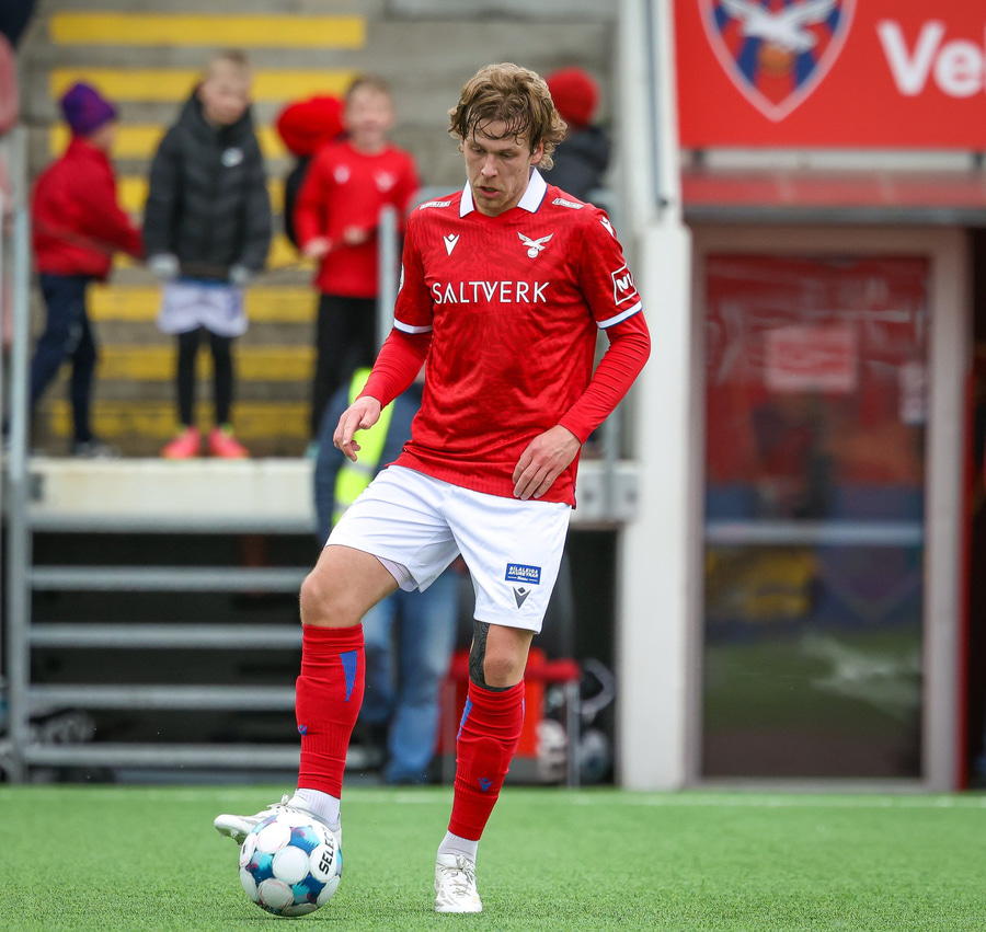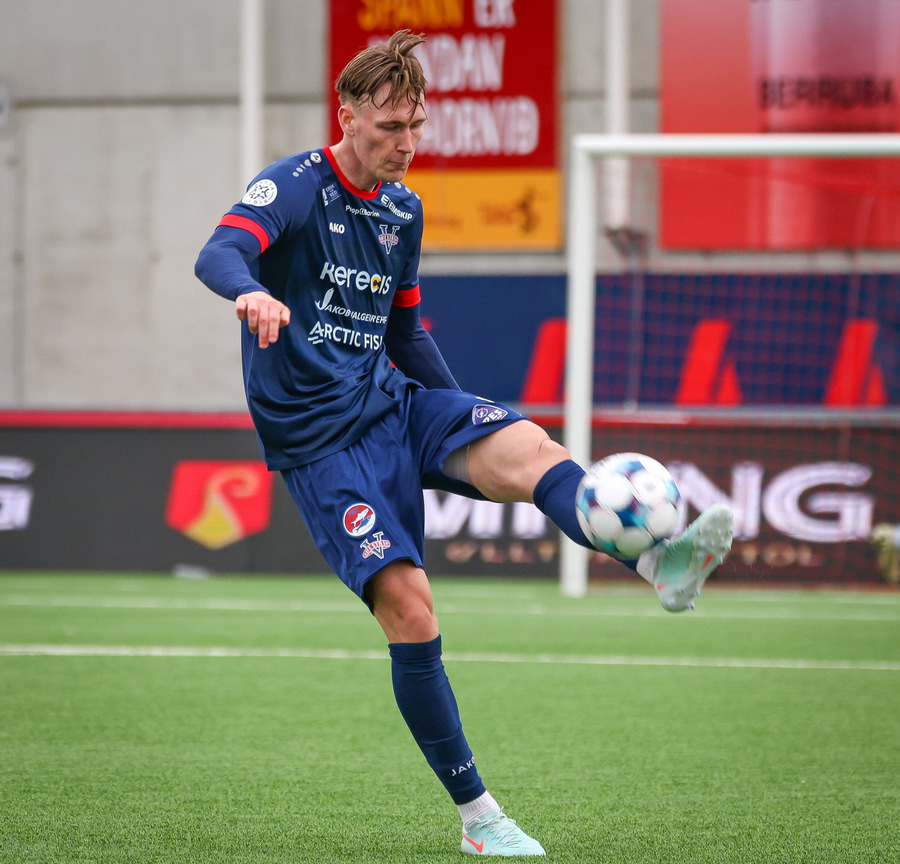 Anton Kralj kemst upp vinstri kantinn eftir flott samspil við Jeppe Pedersen. Anton á fína fyrirgjöf inn á Daða Berg sem nær skoti, sem berst aftur Anton. Hann setur boltann fyrir, þar sem Sergine Fall er mættur með seinni skipunum en skot hans frekar auðvelt fyrir Stefán Þór.