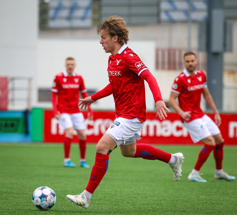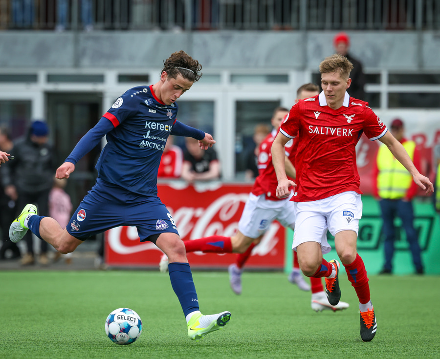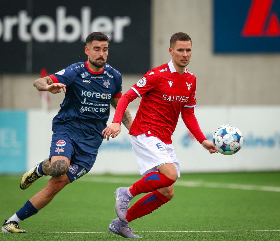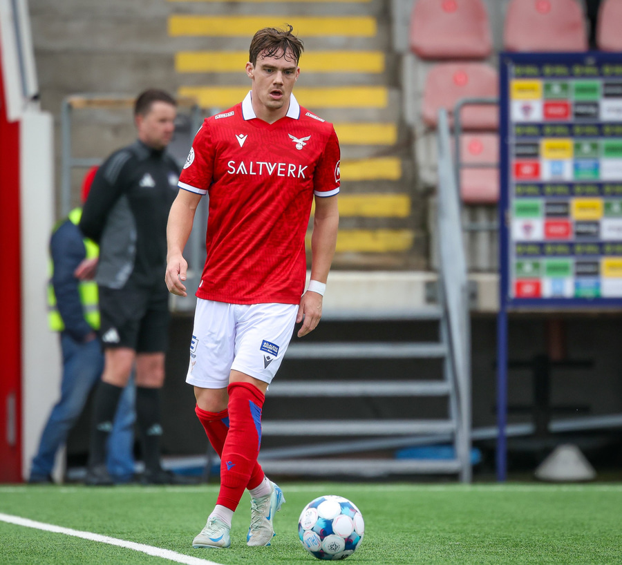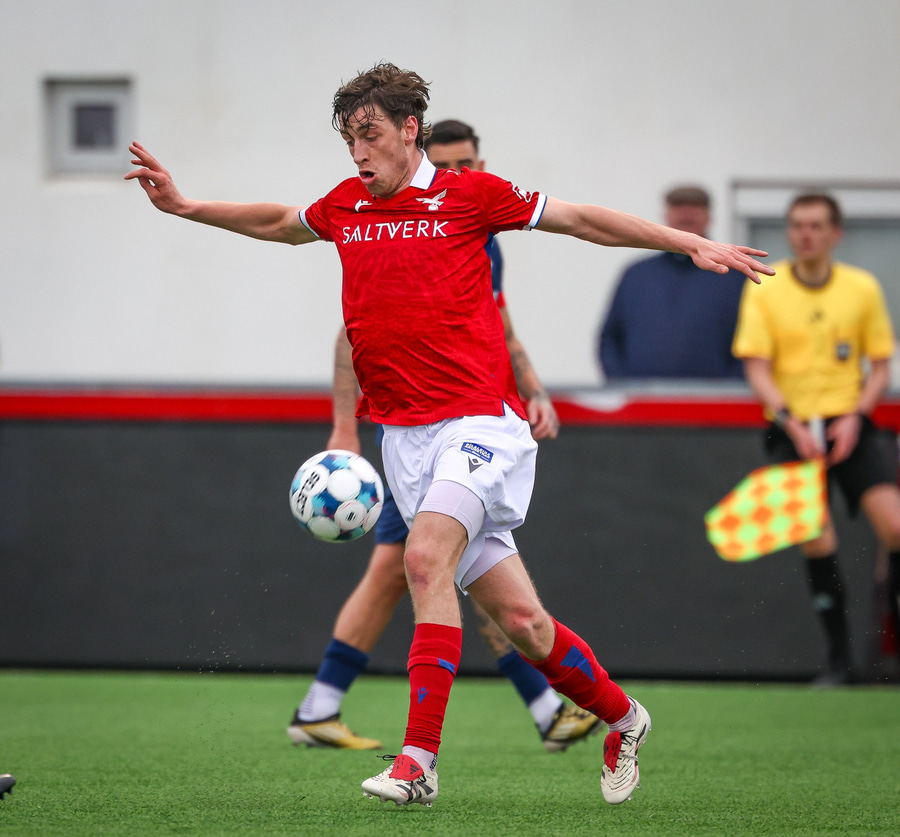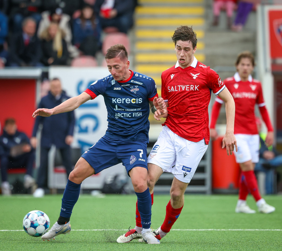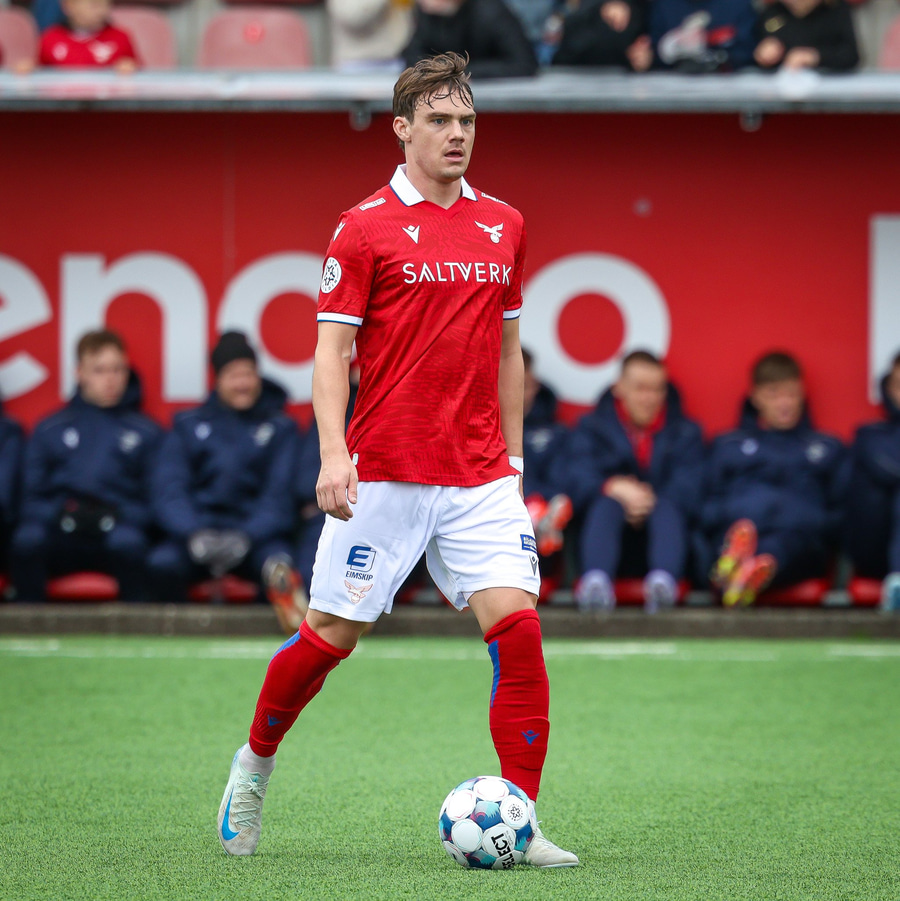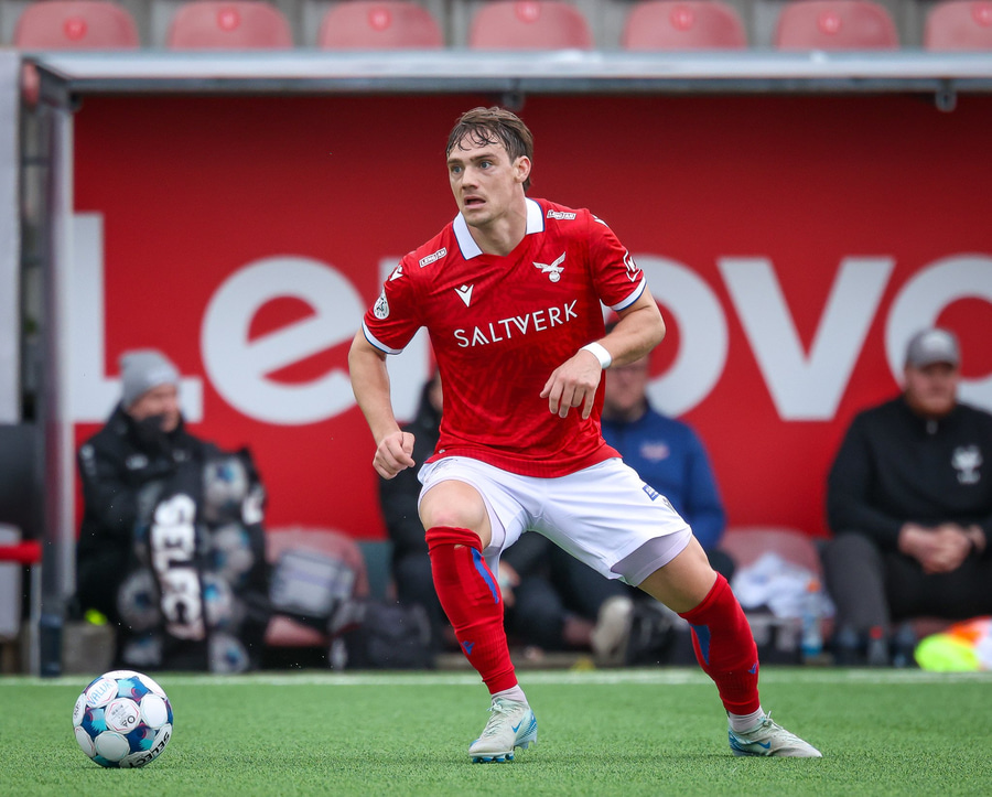 Anton Kralj kemst upp vinstri kantinn eftir flott samspil við Jeppe Pedersen. Anton á fína fyrirgjöf inn á Daða Berg sem nær skoti, sem berst aftur Anton. Hann setur boltann fyrir, þar sem Sergine Fall er mættur með seinni skipunum en skot hans frekar auðvelt fyrir Stefán Þór.