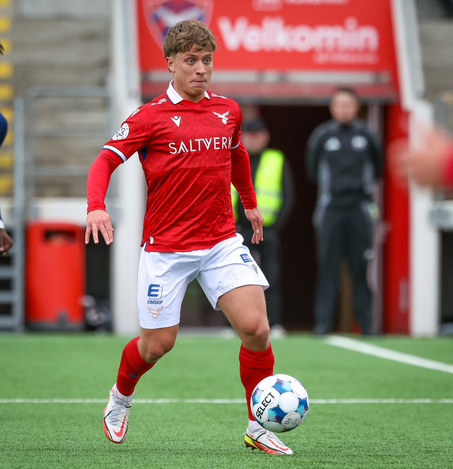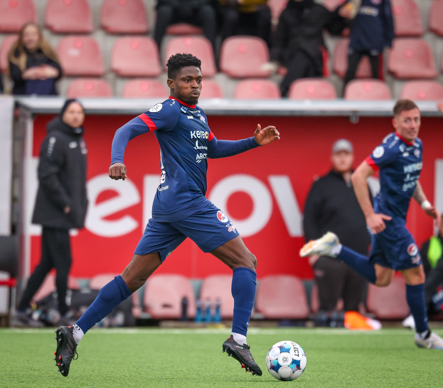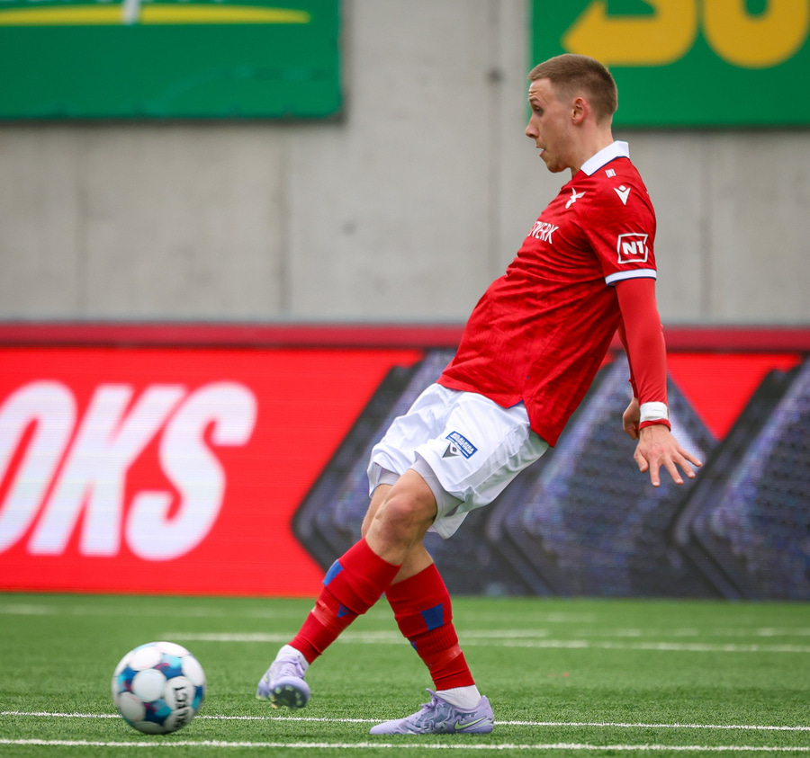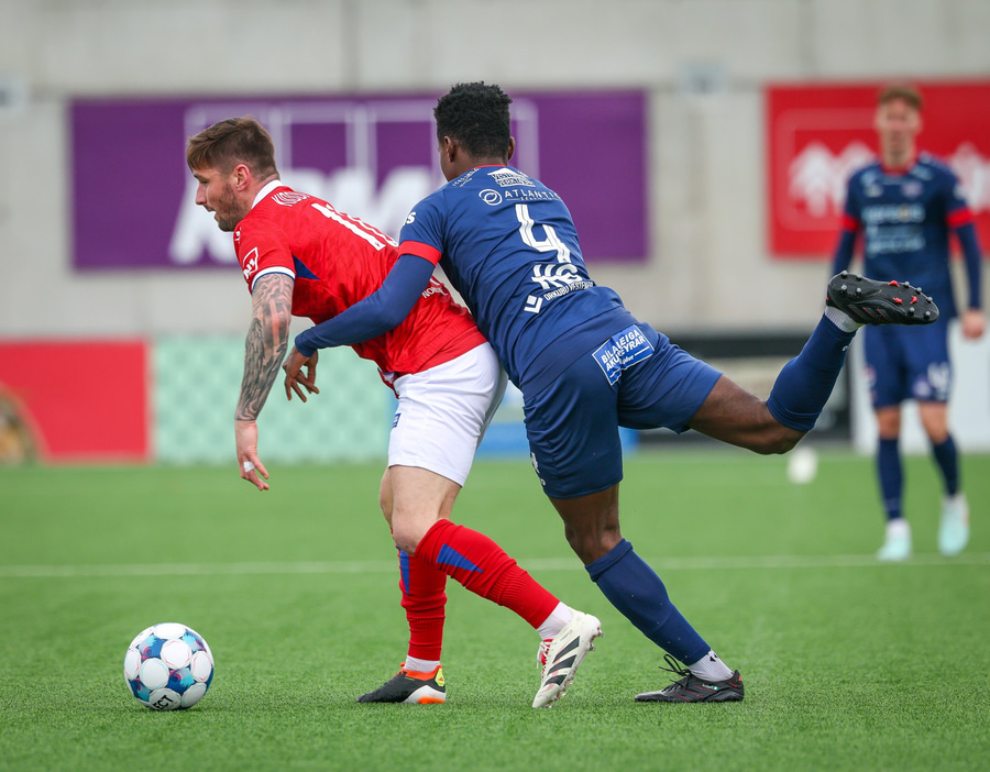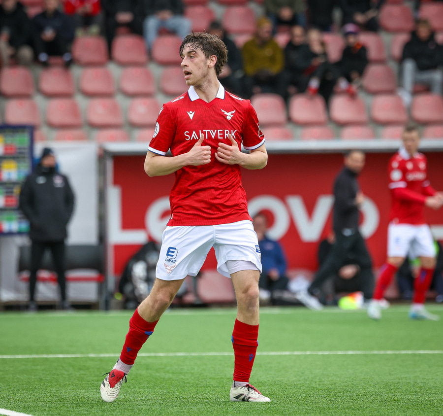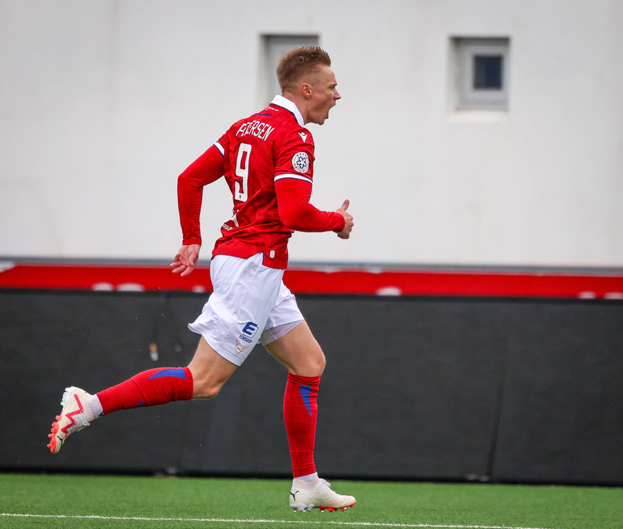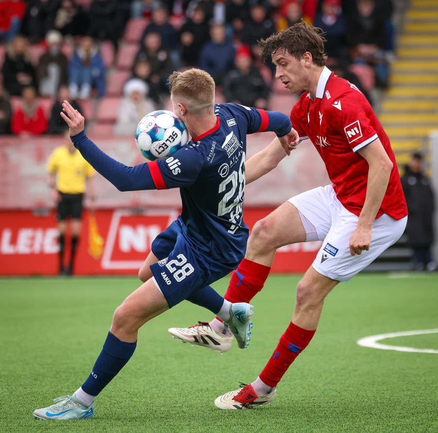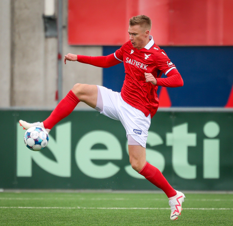 Anton Kralj kemst upp vinstri kantinn eftir flott samspil við Jeppe Pedersen. Anton á fína fyrirgjöf inn á Daða Berg sem nær skoti, sem berst aftur Anton. Hann setur boltann fyrir, þar sem Sergine Fall er mættur með seinni skipunum en skot hans frekar auðvelt fyrir Stefán Þór.
