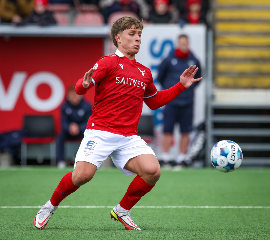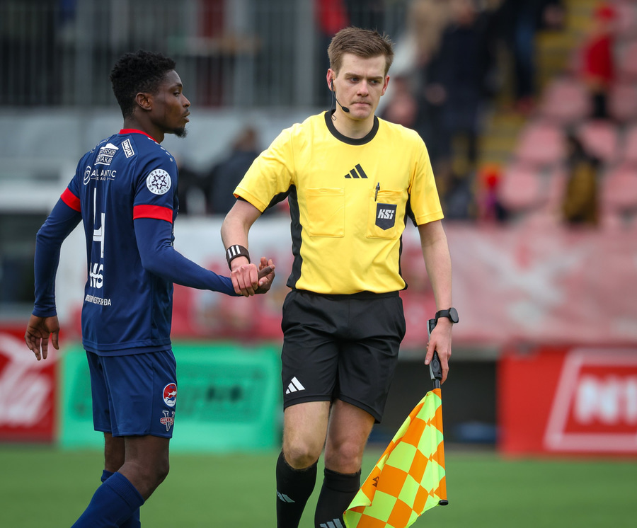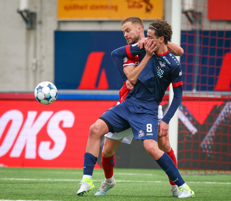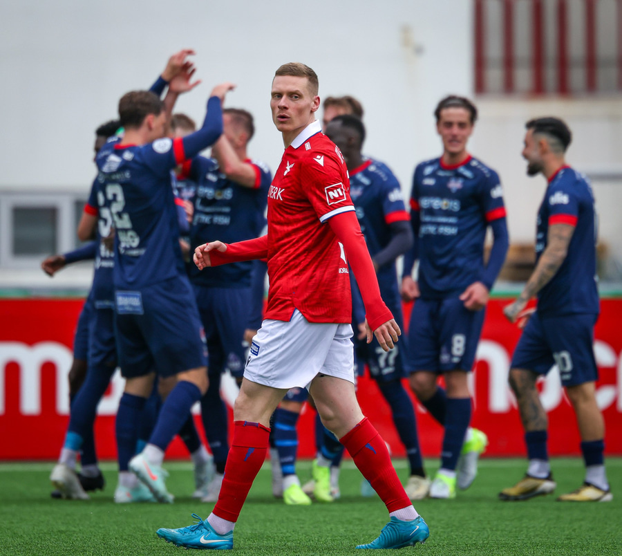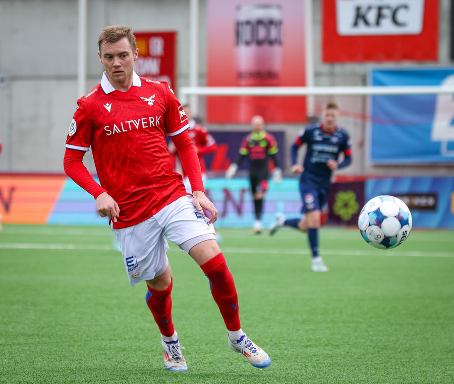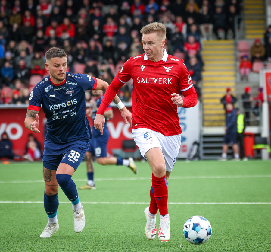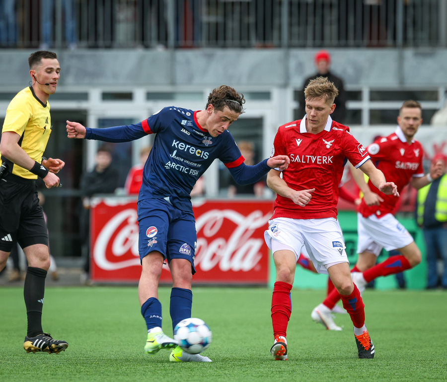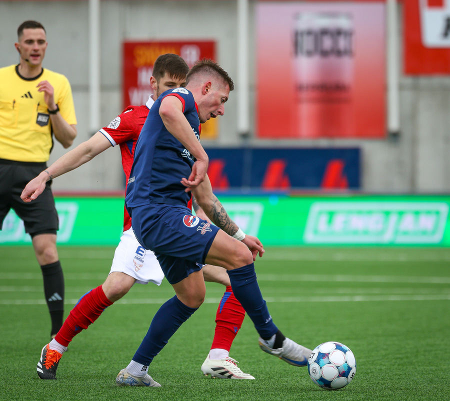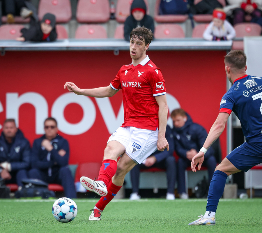 Anton Kralj kemst upp vinstri kantinn eftir flott samspil við Jeppe Pedersen. Anton á fína fyrirgjöf inn á Daða Berg sem nær skoti, sem berst aftur Anton. Hann setur boltann fyrir, þar sem Sergine Fall er mættur með seinni skipunum en skot hans frekar auðvelt fyrir Stefán Þór.